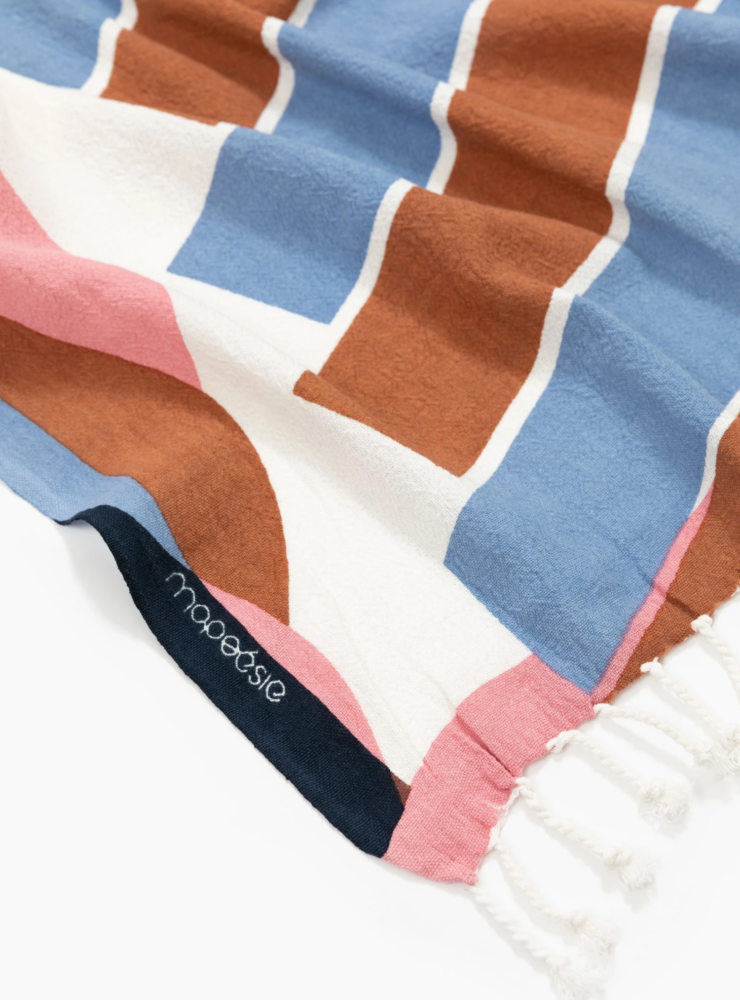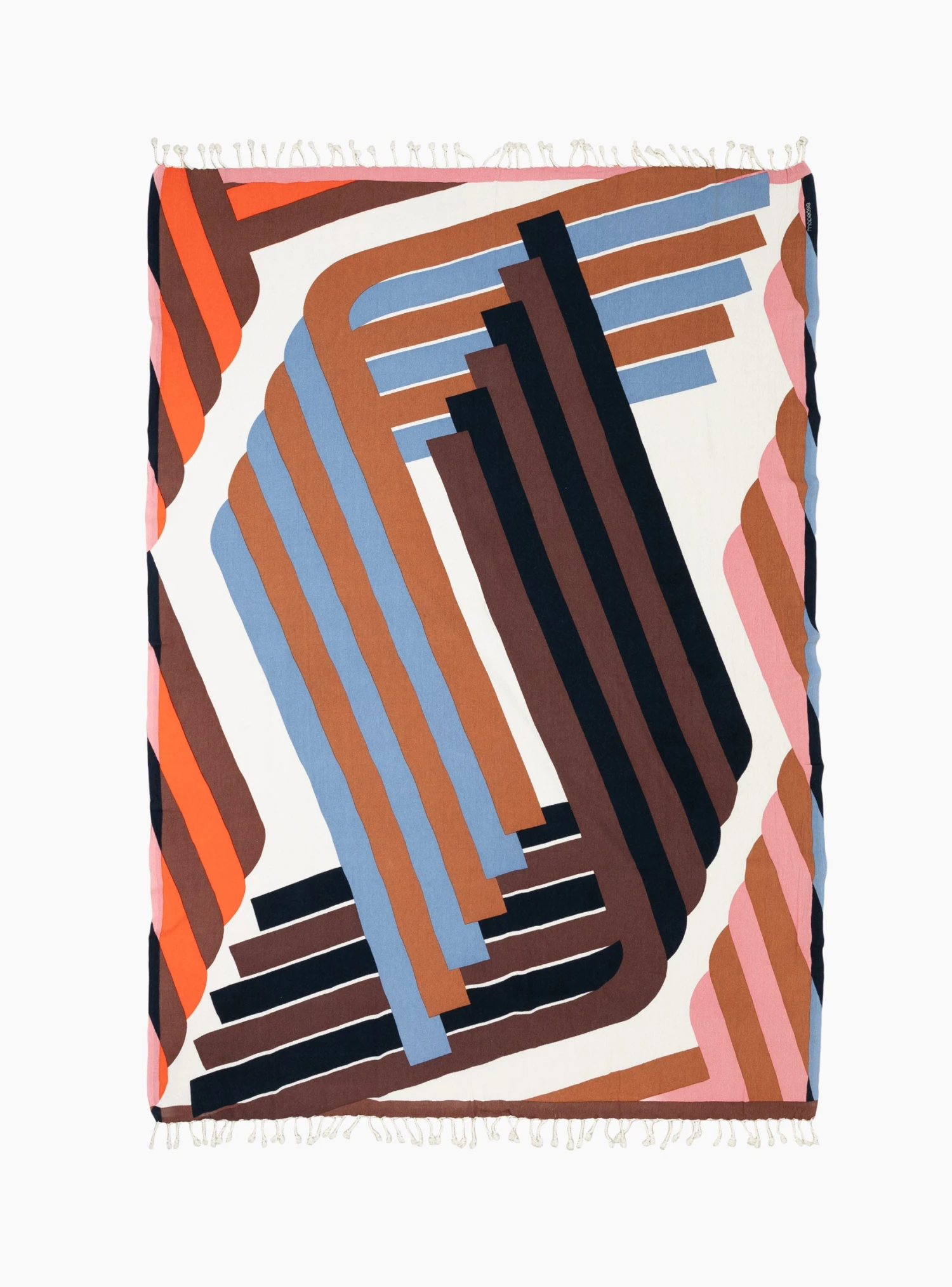 The Alto Beach Towel from Mapoeise features a multi-coloured, hand screen-printed graphic. Made in India from weaved cotton, the towel can be used as a throw or bedspread and features white tassels at both ends.