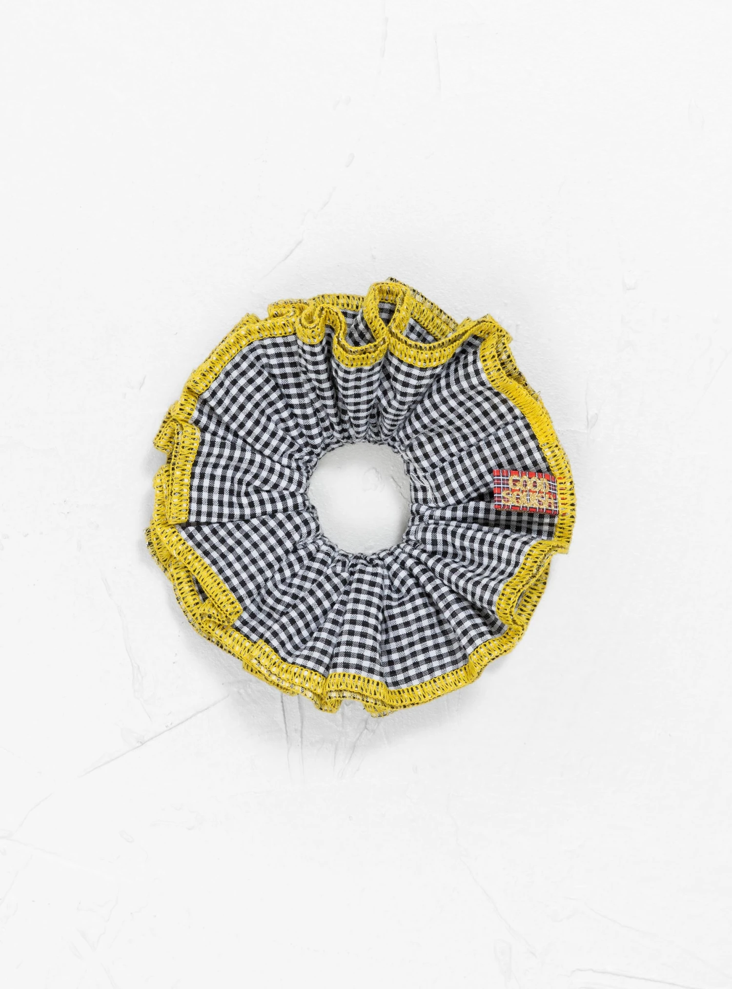 Good Squish sources deadstock fabrics from around the UK and Europe to create its range of hair scrunchies, including this Jellyfish Baby Wilder design, handmade in London from a gingham cotton check with a yellow trim.