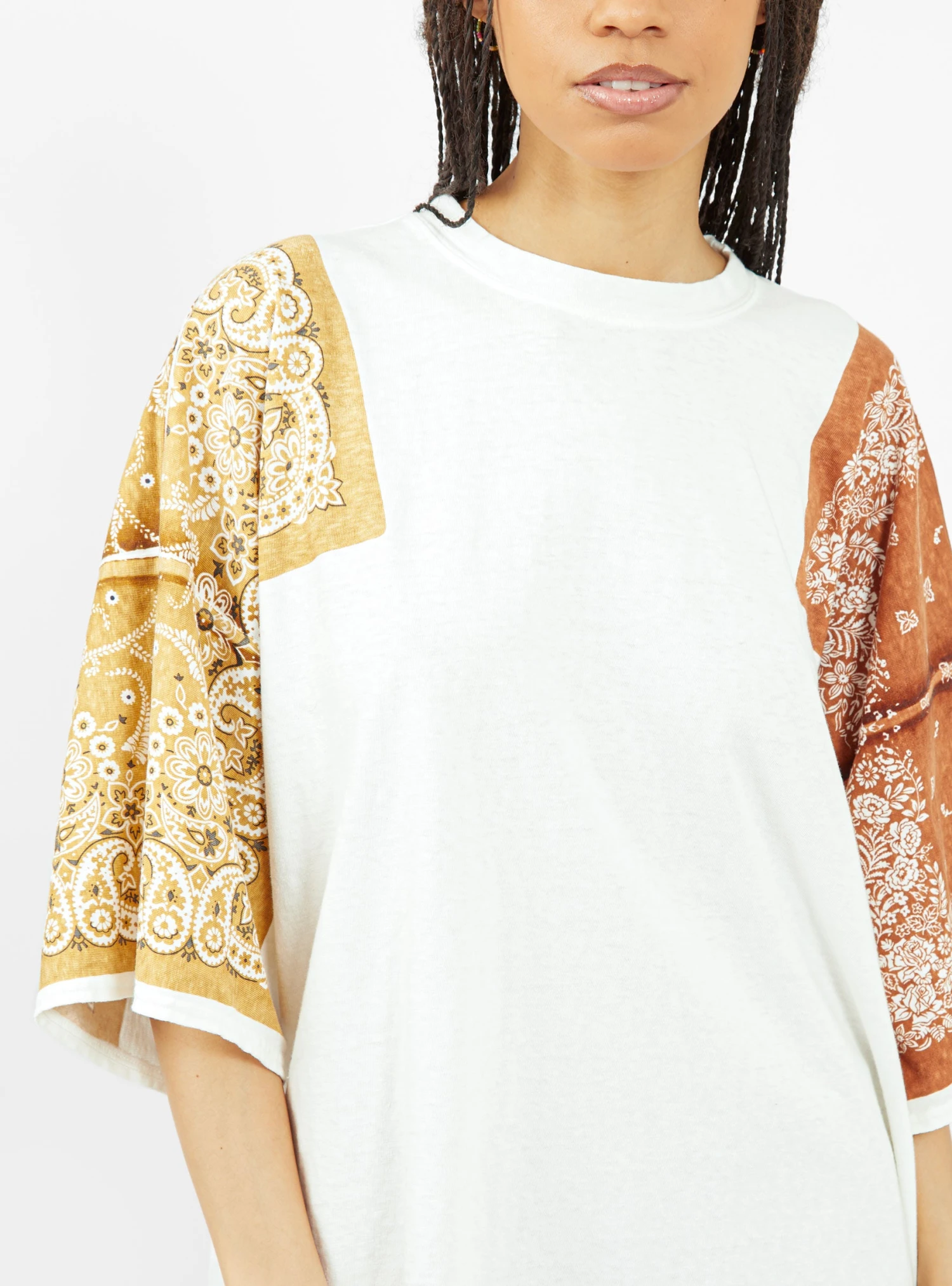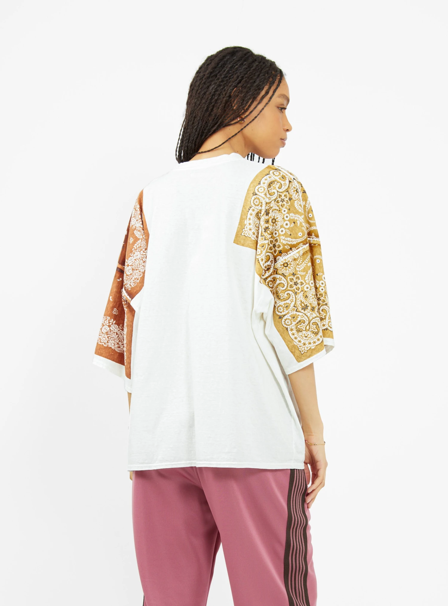 Made in Japan from mid-weight cotton jersey, this white Bandana T-shirt from Kapital is cut to an oversized silhouette with dropped shoulders and features the label’s signature motif screen printed in shades of light brown.