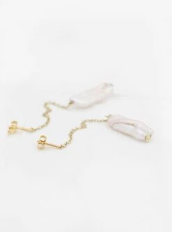 Saskia Diez champions perfect imperfections with these Baton earrings. Made in Germany from 14kt gold, they comprise dainty chains dropping down from the lopes to suspend organic-shaped freshwater pearls.