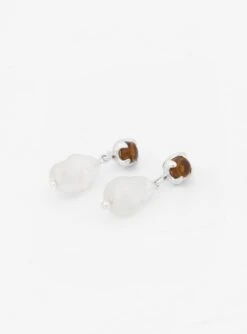 These amber-brown earrings are part of CLED’s Beam series, inspired by the spectrum of shades emitted when light is refracted, such as a rainbow. Made in Los Angeles from 24kt gold-plated brass, they’re embellished with the label’s signature Eco Gems and faux pearls, both of which are hand-formed from discarded glass bottles.