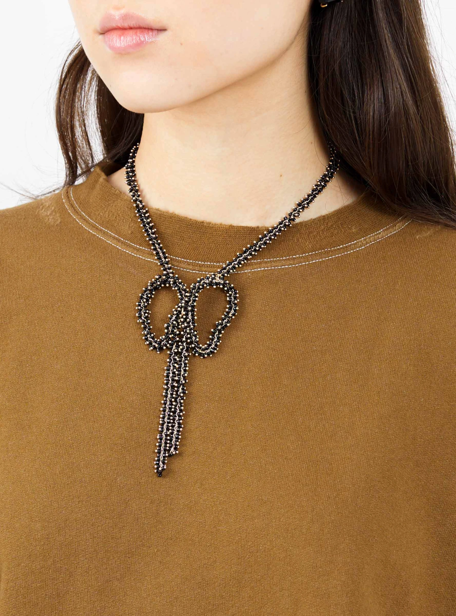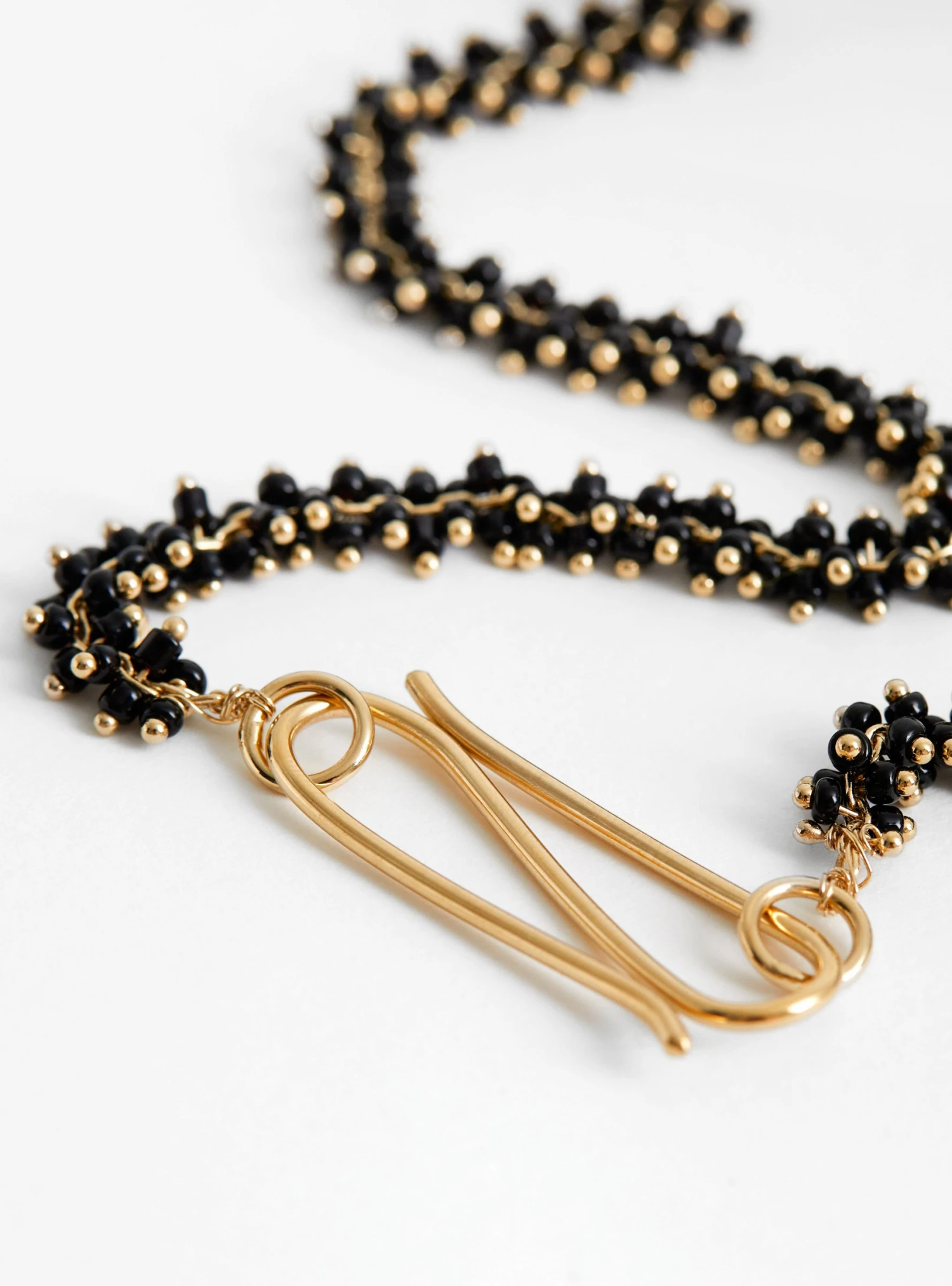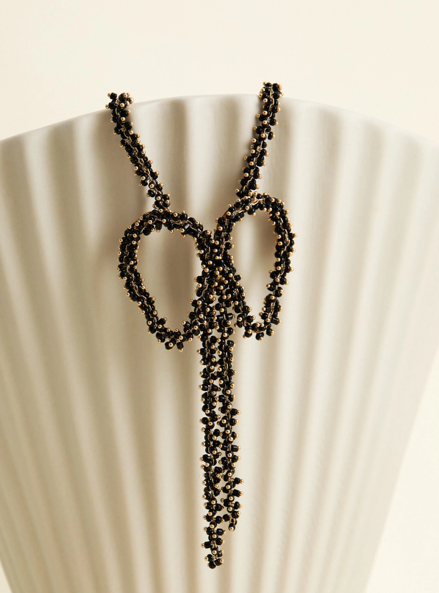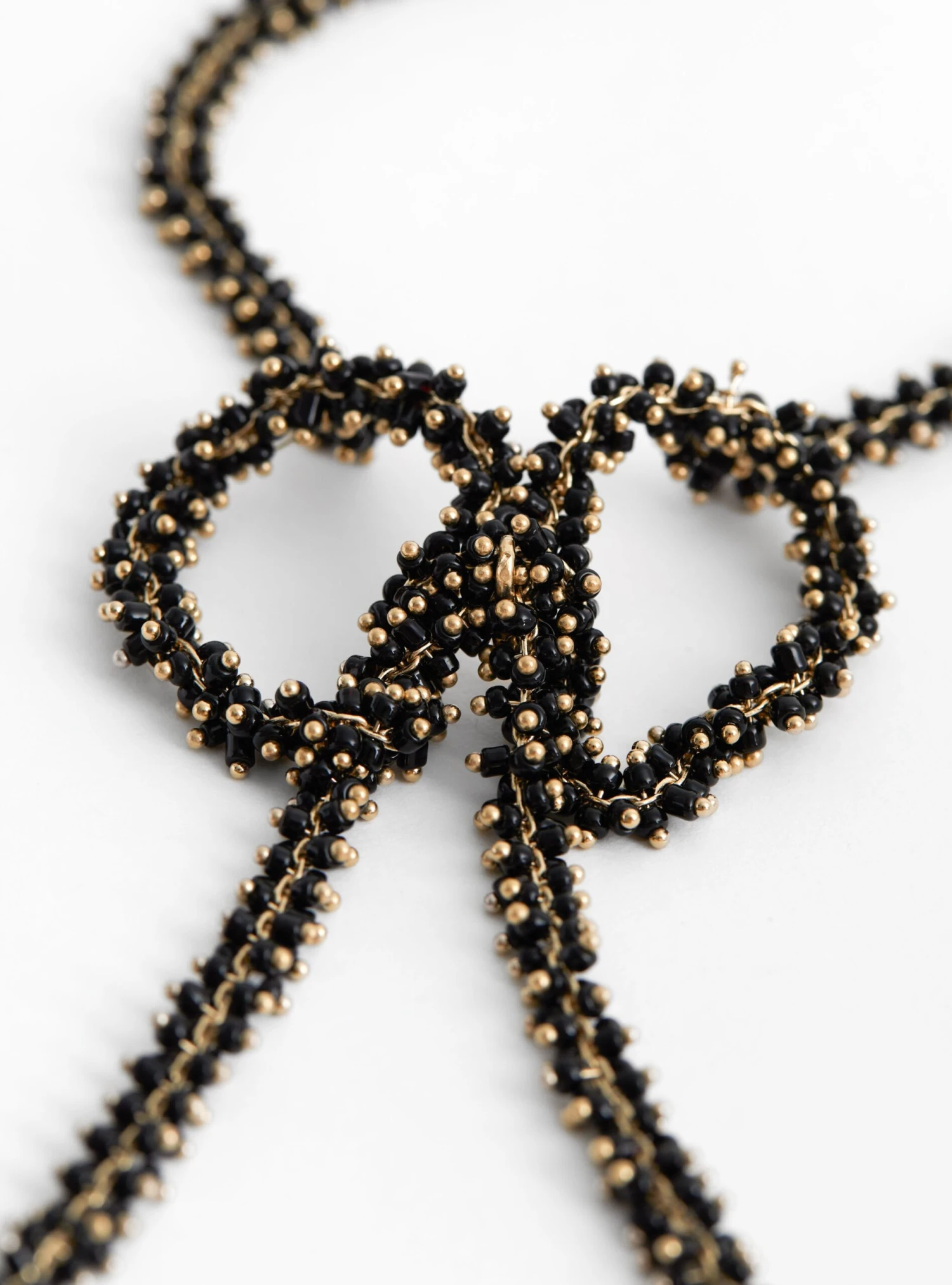 This black Bow necklace from BEATRIZ PALACIOS is handmade in Spain from gold-plated silver and embellished with black glass beads. An extendable fastening provides the perfect fit.