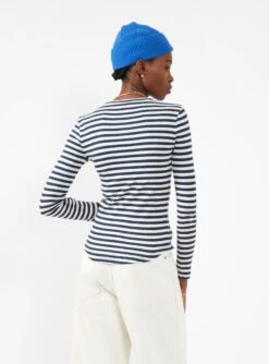 This blue and white striped Charlotte T-shirt from YMC has a slim-fitting silhouette that’s ideal for layering over. Made from organic cotton jersey, it features a curved hem and baseball-inspired topstitching.
