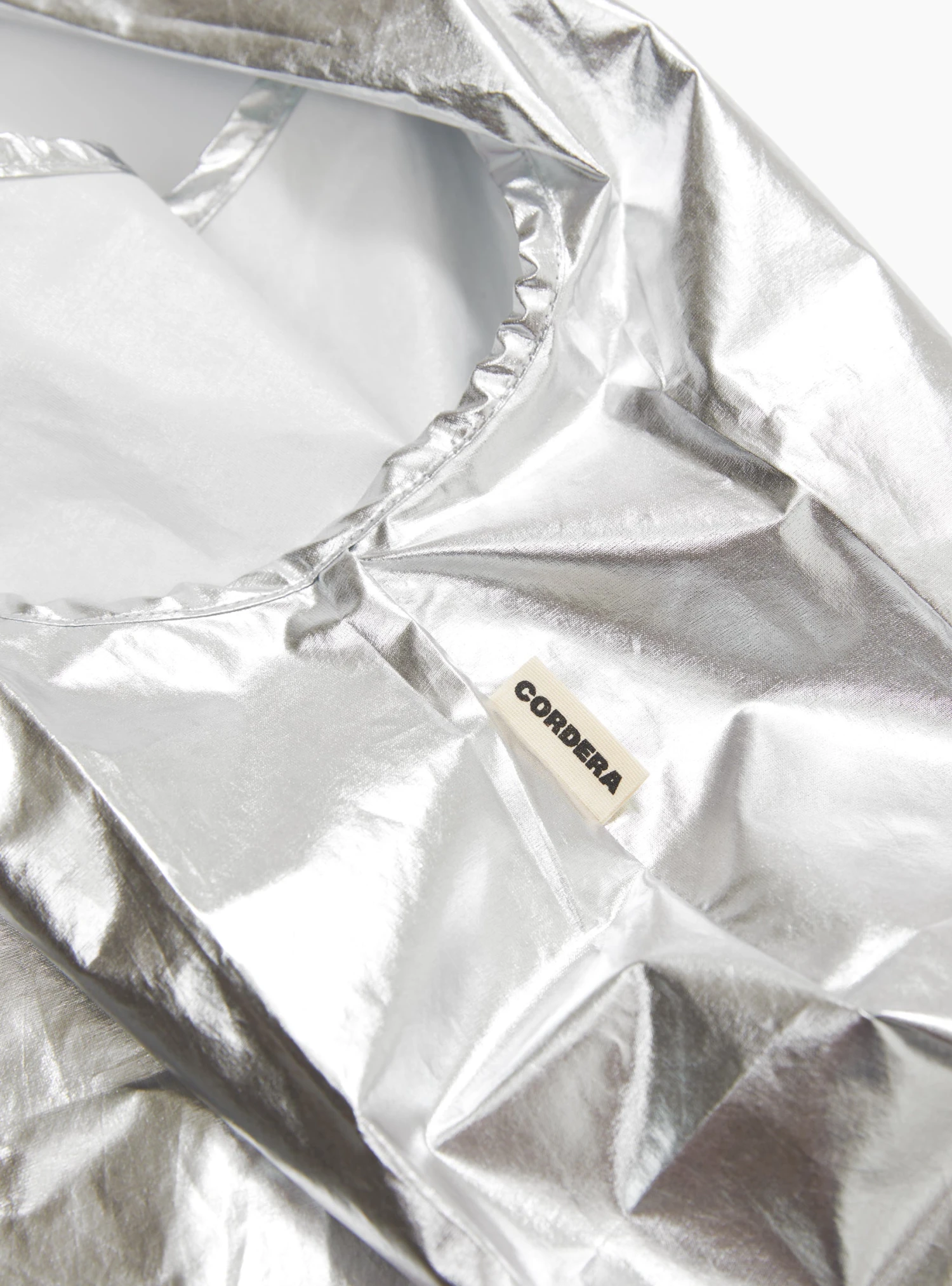 The Cotton & Silk bag from Cordera arrives in a striking silver. Made in Spain, the oversized bag offers ample storage for your day-to-day. The shimmering silver bag will be sure to bring vibrancy to any outfit.