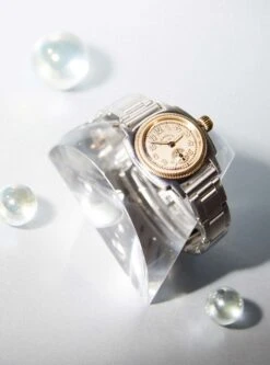 - Gold-tone stainless steel bezel