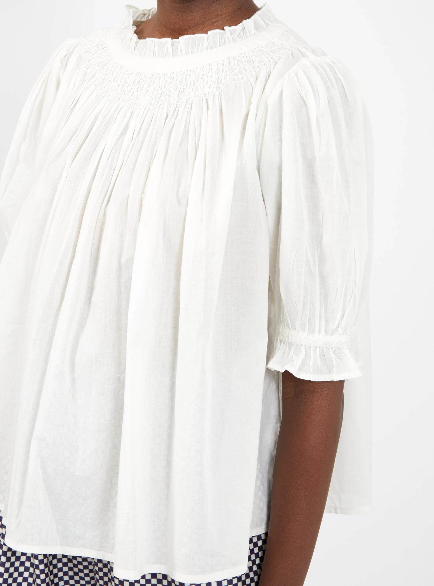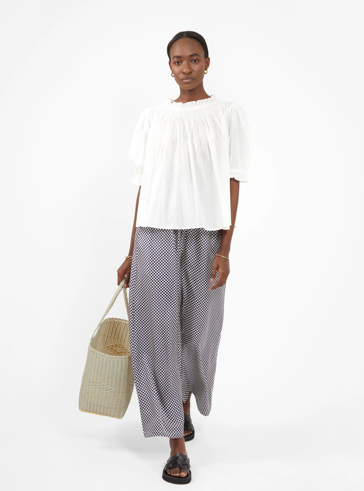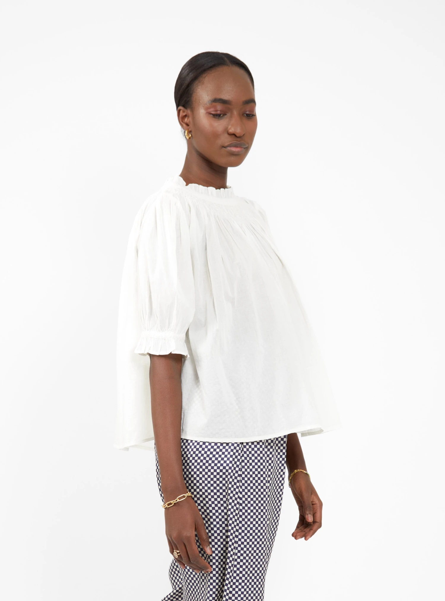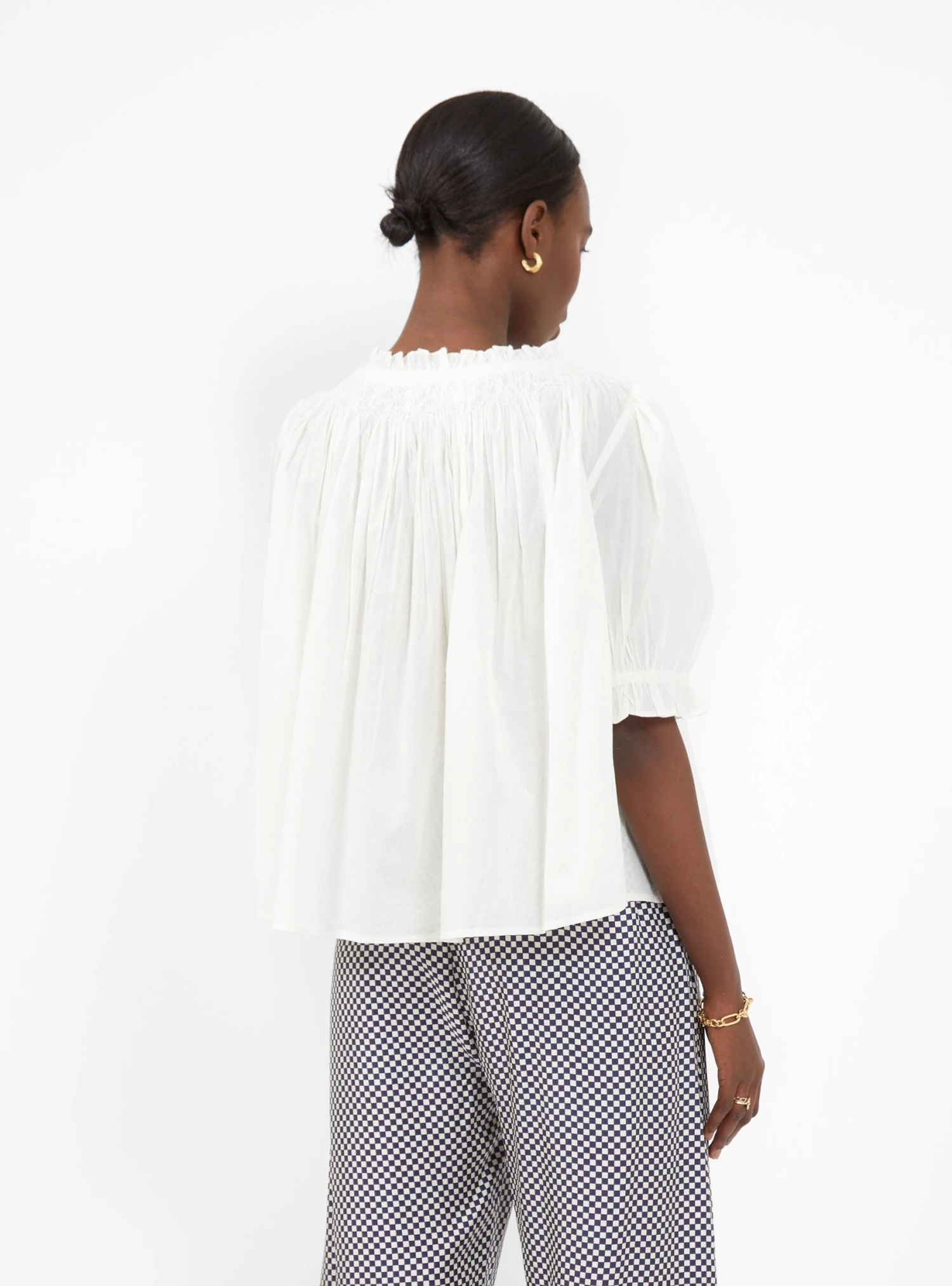 Skall Studio champion soft, romantic silhouettes spring wardrobe, with its latest offering coming in the form of the Daphne Tee. It’s made from cotton voile fabric to a loose silhouette detailed with pleats to create volume. This lightweight piece is finished with a round neck with a ruffle edge, 3/4 length sleeves and embroidered details.