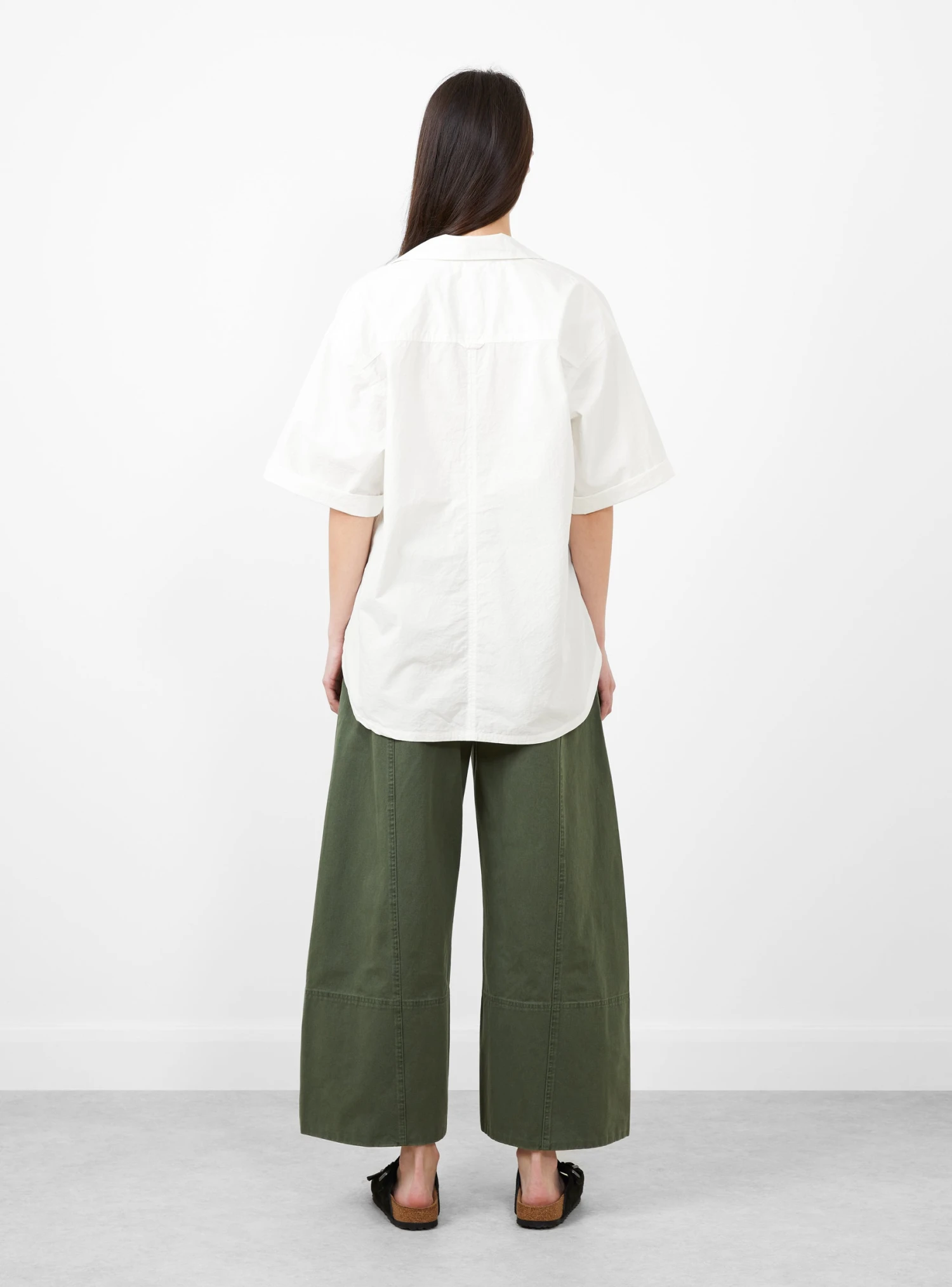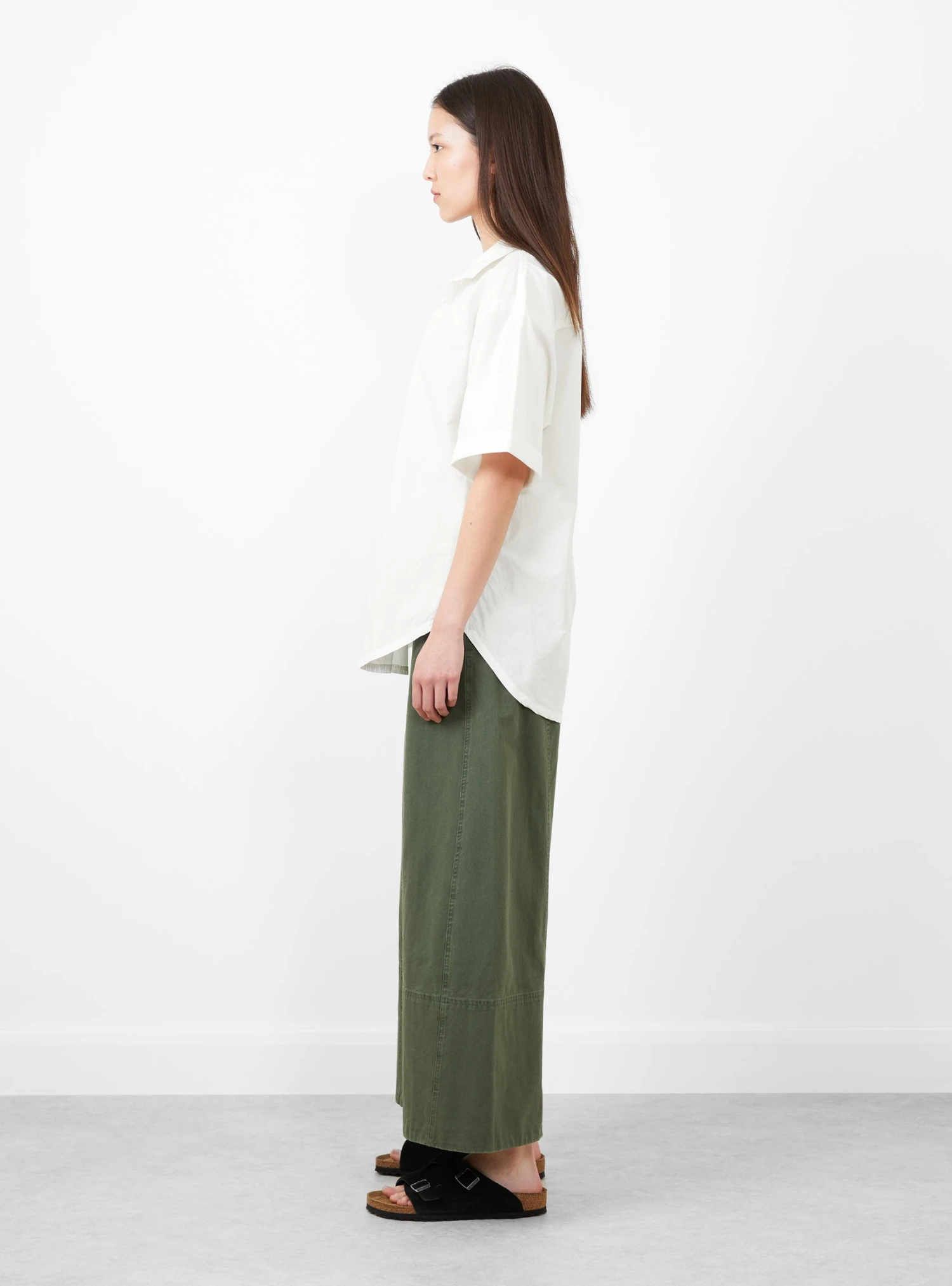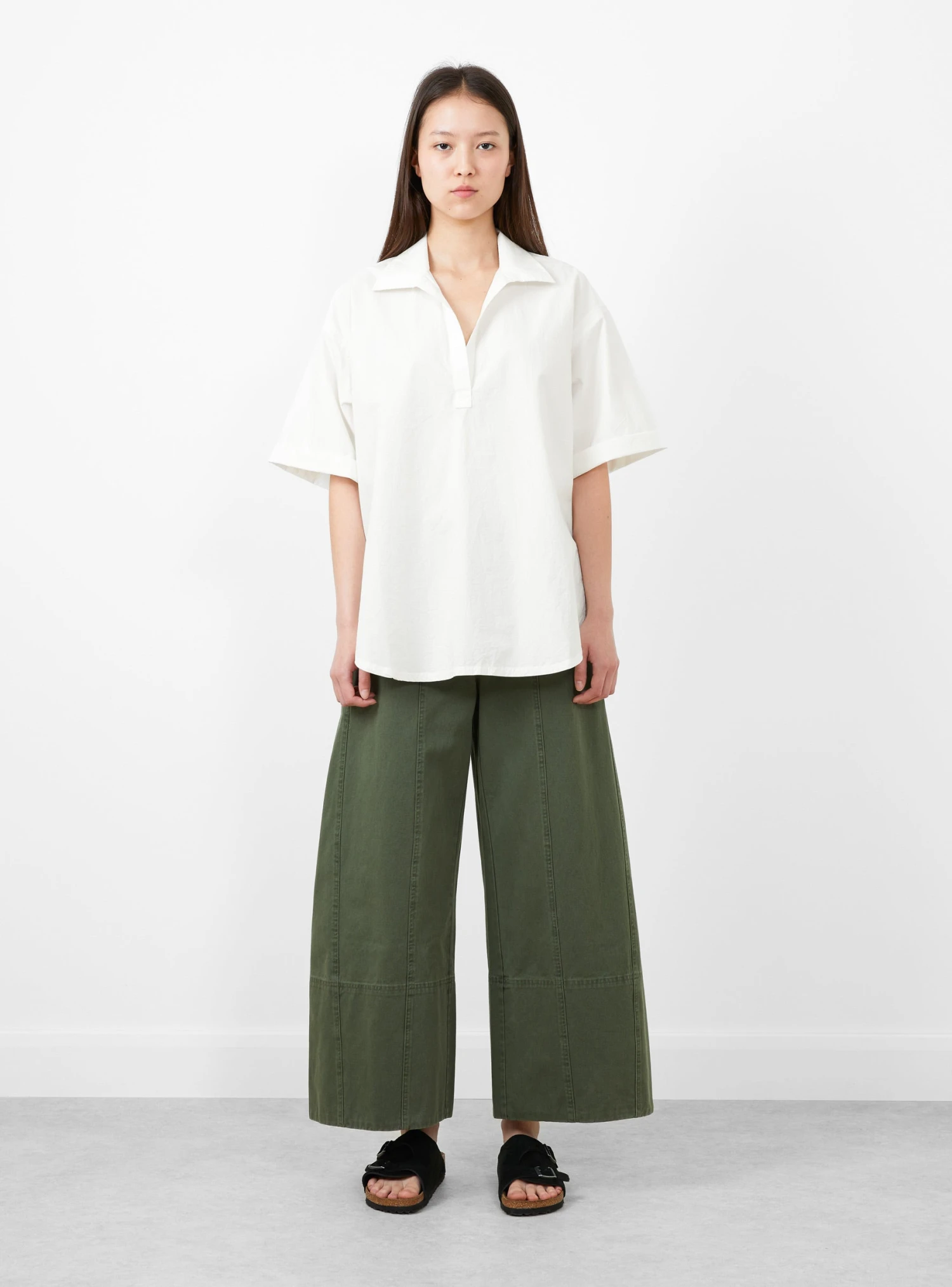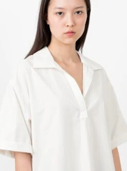 The Easy Pop-Over Henley in cream from Apiece Apart, crafted in India from 100% Organic Cotton. Featuring a collared open neck-line, a straight silhouette, shiirtail hem, side seam slits and short sleeve with the option to cuff.