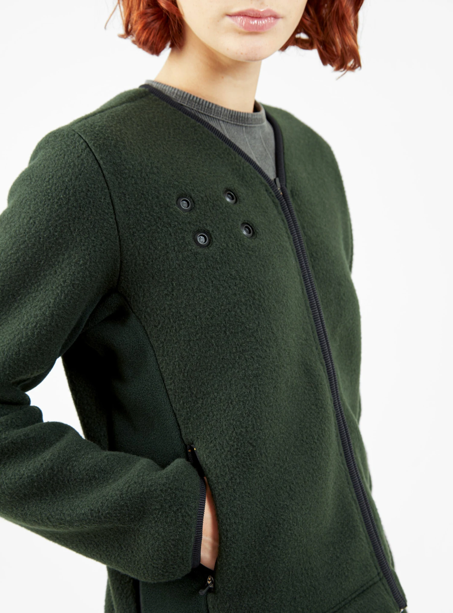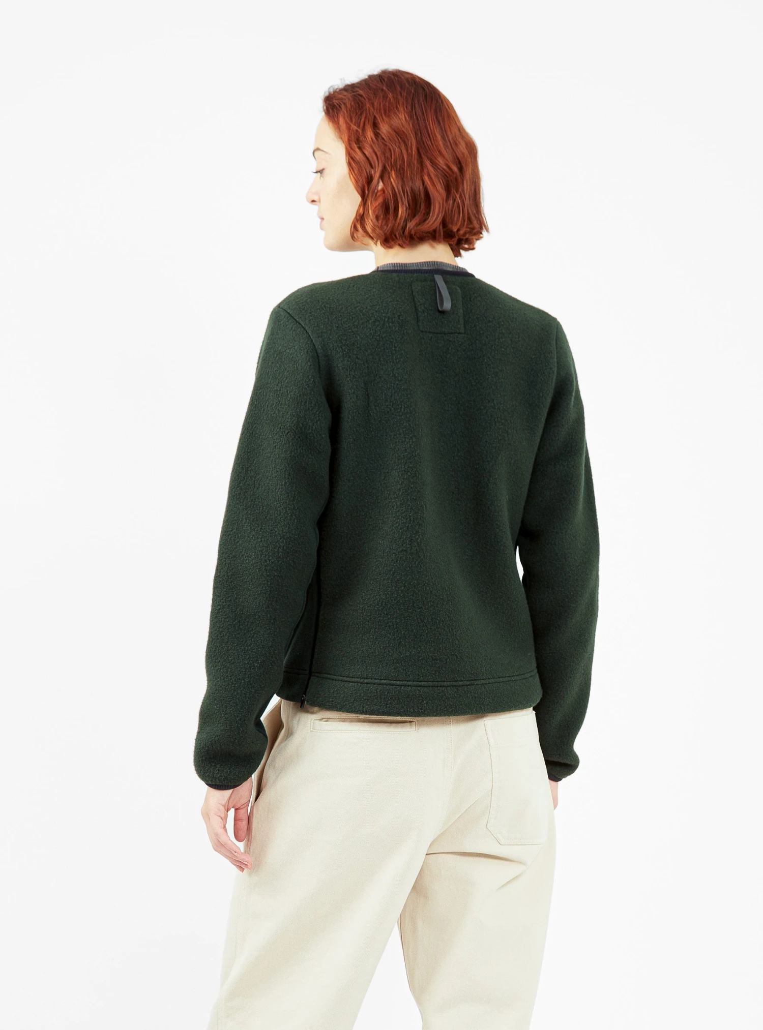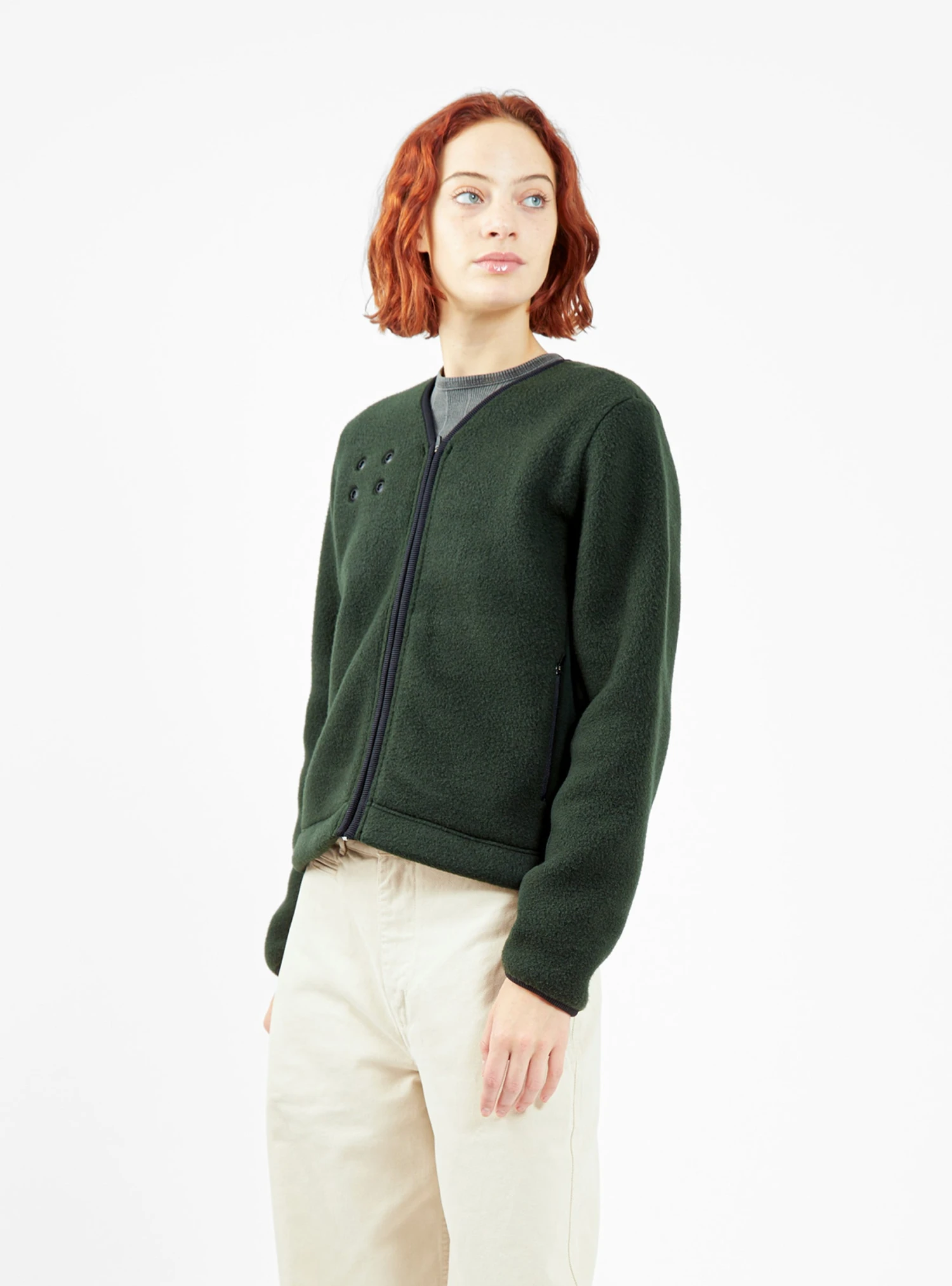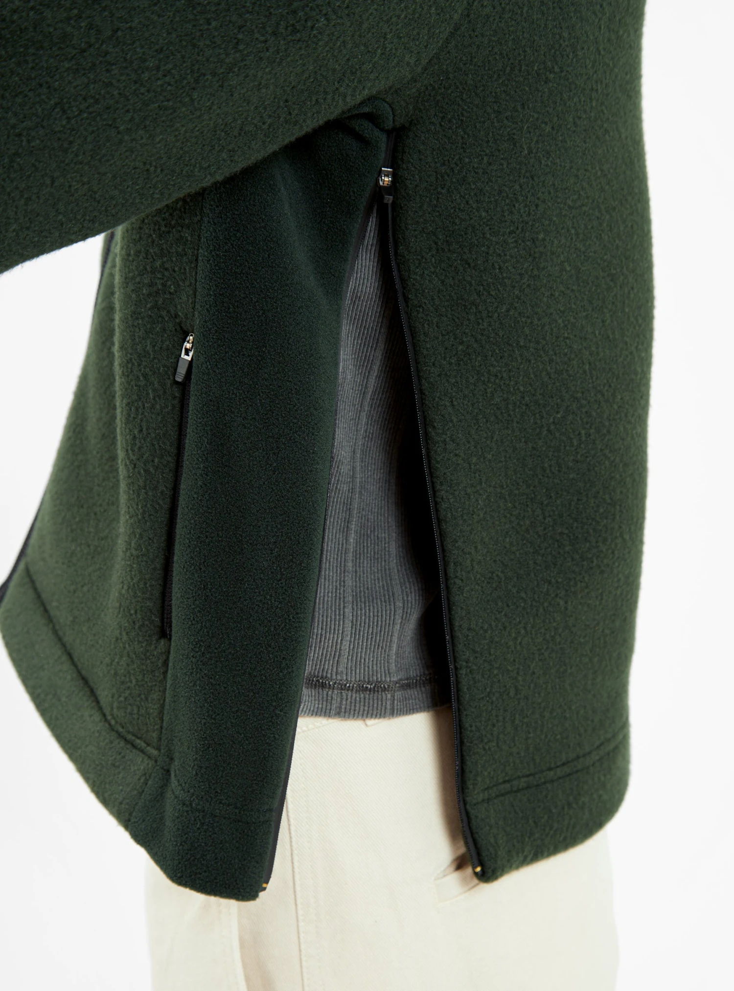 This forest-green Fleece 1.0 from Early Majority can be styled alone or combined with waterproof layers for added insulation. Made from recycled Italian fleece, it’s cut to a classic-fit silhouette with a V-neck and zip-fastening side seams.