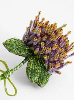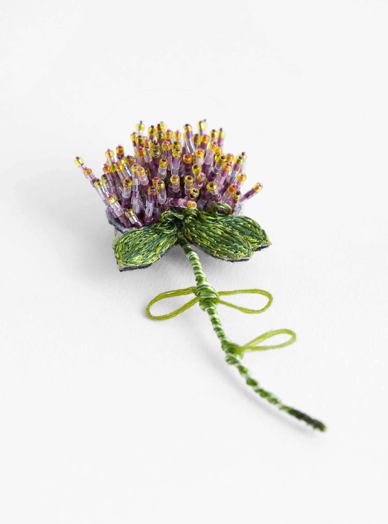 Trovelore enlists highly skilled Indian artisans to create its range of nature-inspired jewellery, including this Globe Amaranth Brooch, which is made by hand using felt, sequins and beads.