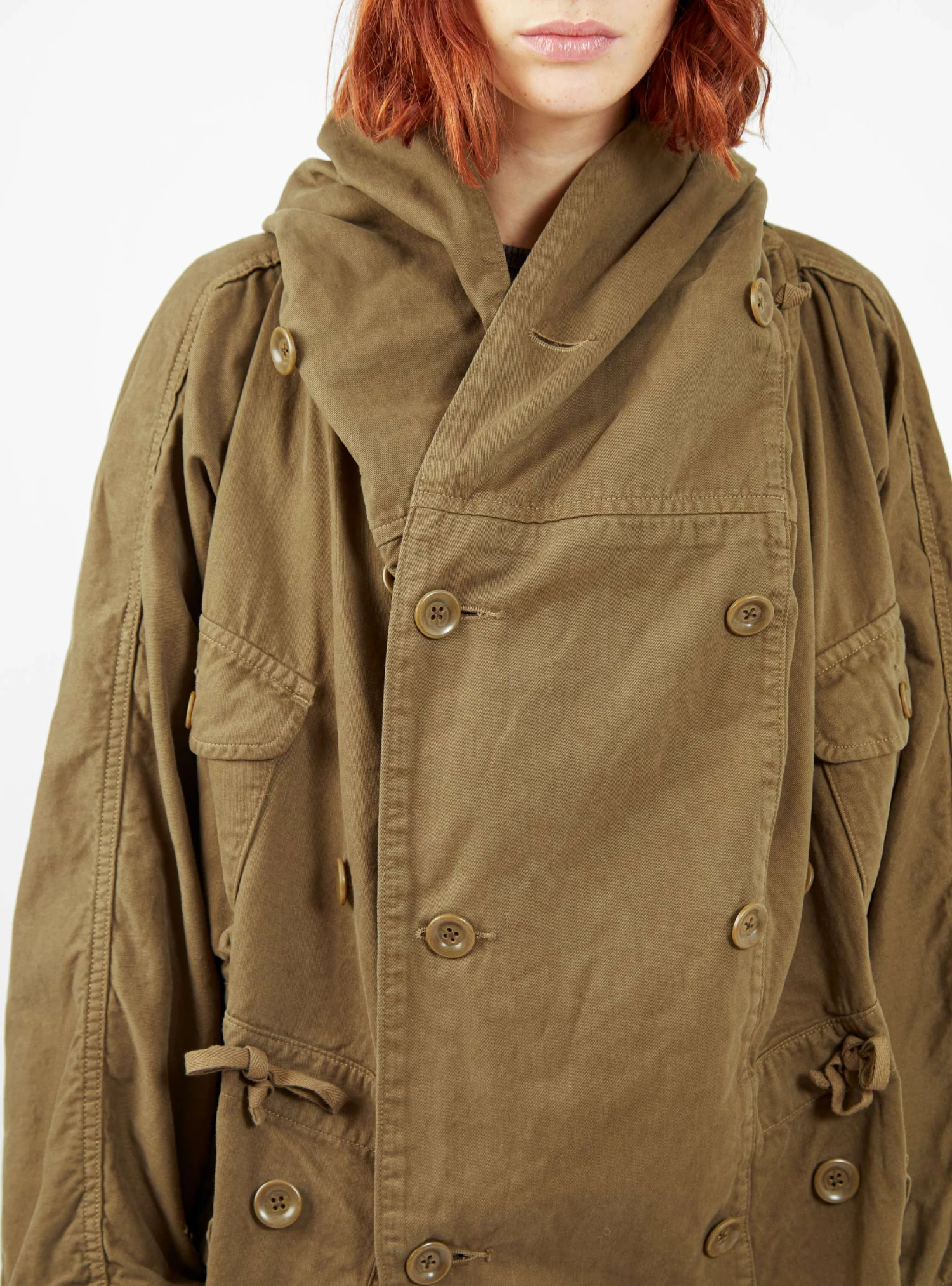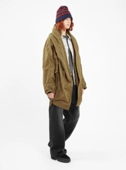 Made in Japan from cotton twill, this khaki Katsuragi coat from Kapital is cut to an oversized silhouette with dropped shoulders and patch pockets. Adjustable drawstrings at the hood, waist and hem provide an adaptable fit.