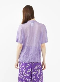 Made with metallic fibres that shimmer off the light, this purple Kocha top from Christian Wijnants is knitted to a relaxed silhouette with dropped shoulders and ruffle trims.