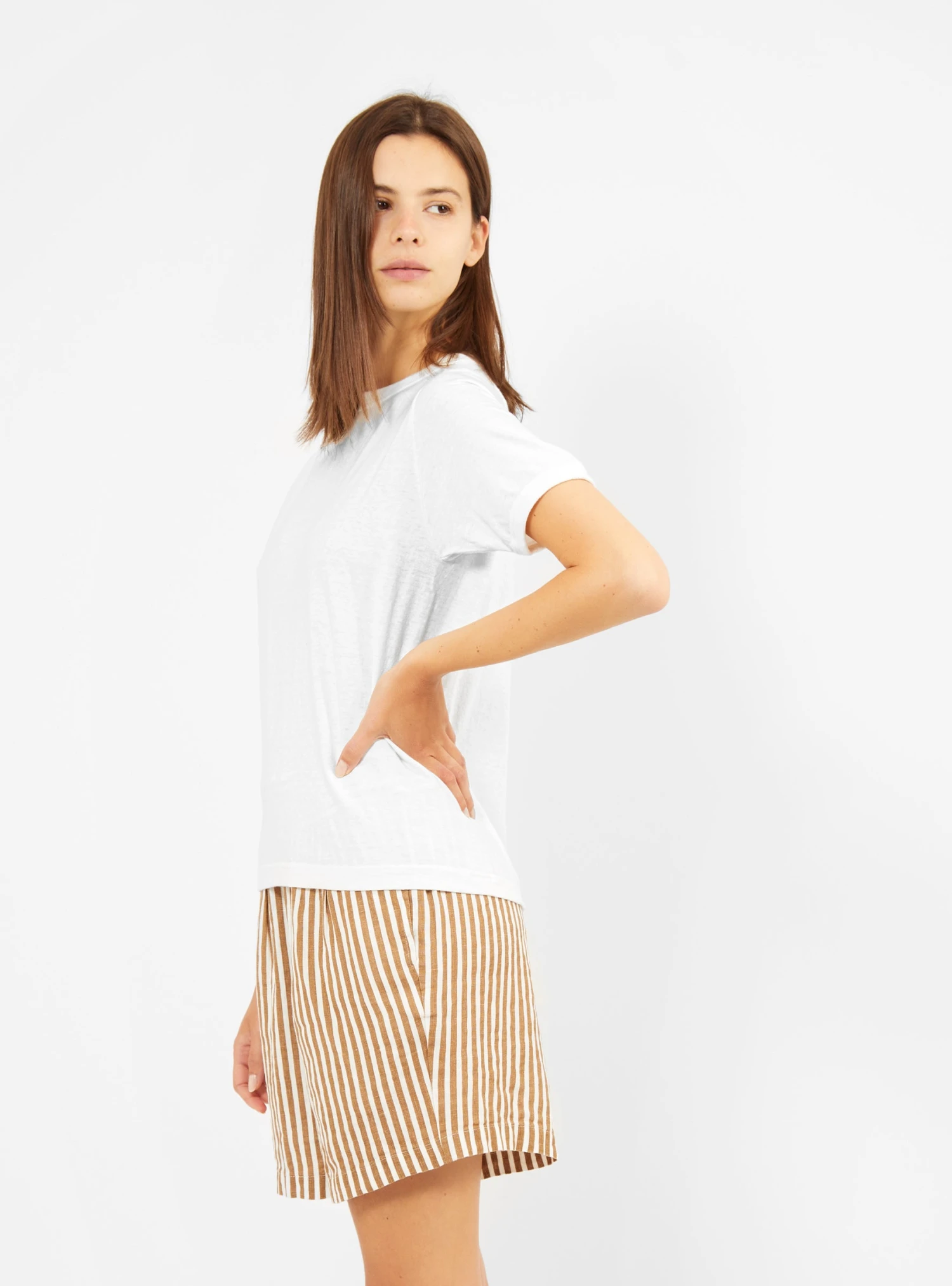 Invest in your wardrobe essentials with this off-white Laka T-shirt from Sunray. Made in Japan using an antique circular knitting machines to avoid side seams, it’s cut from mid-weight cotton jersey to a slightly boxy silhouette with a ribbed crewneck and raglan sleeves.