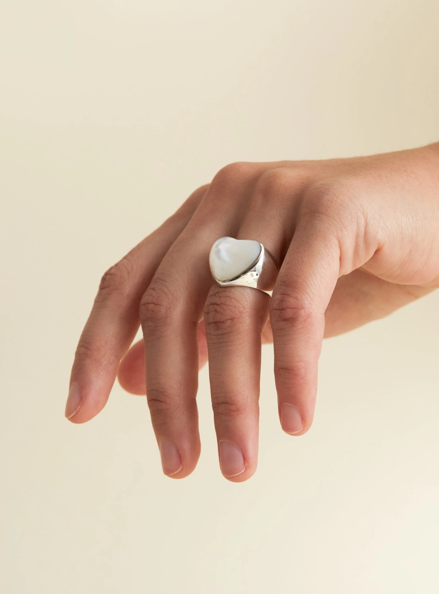 This aptly named Pearl Heart Large ring from New York-based jewellery label Annika Inez is made from 925 sterling silver and embellished with a shimmering mother of pearl.