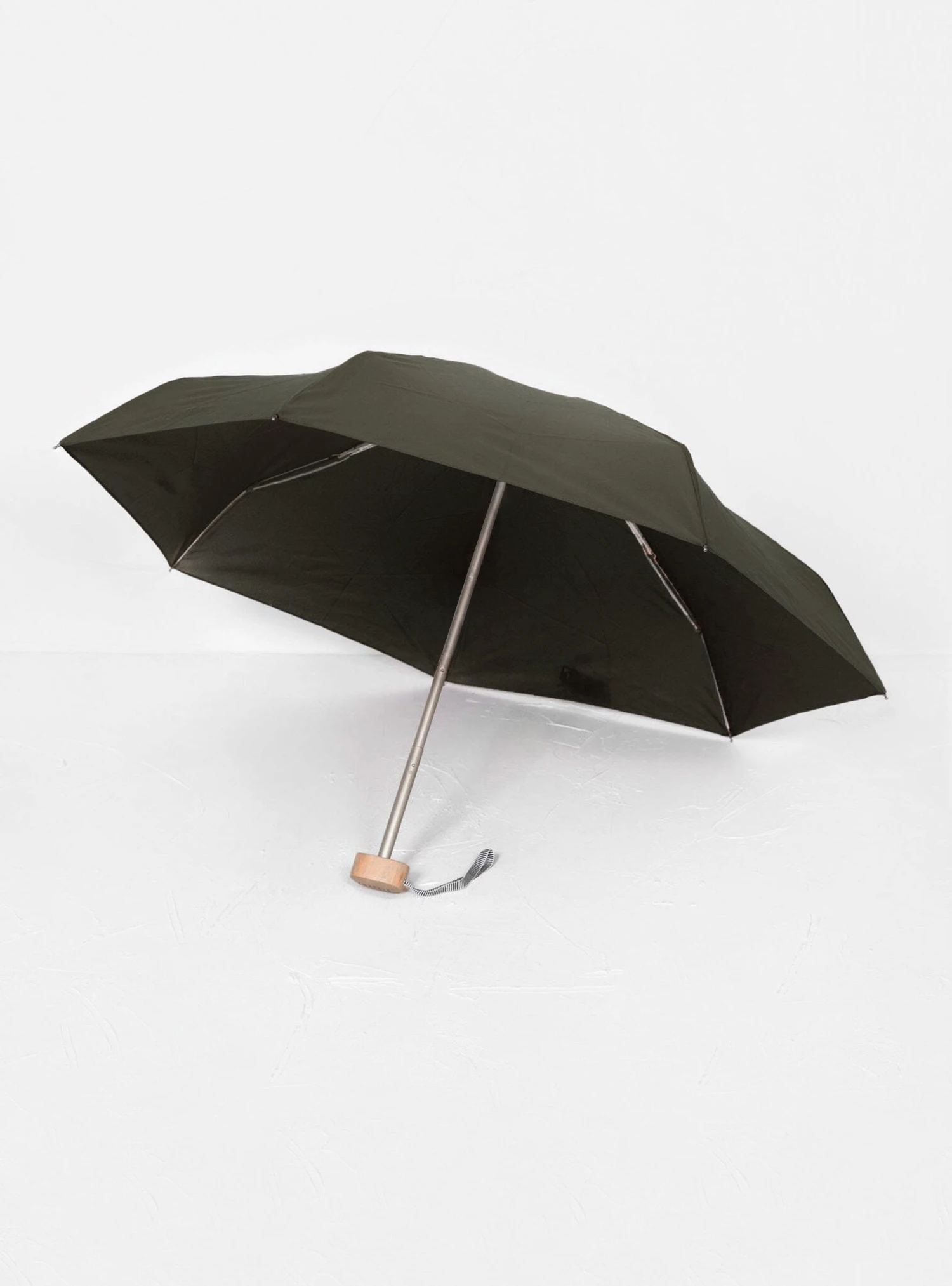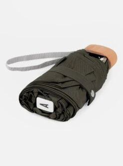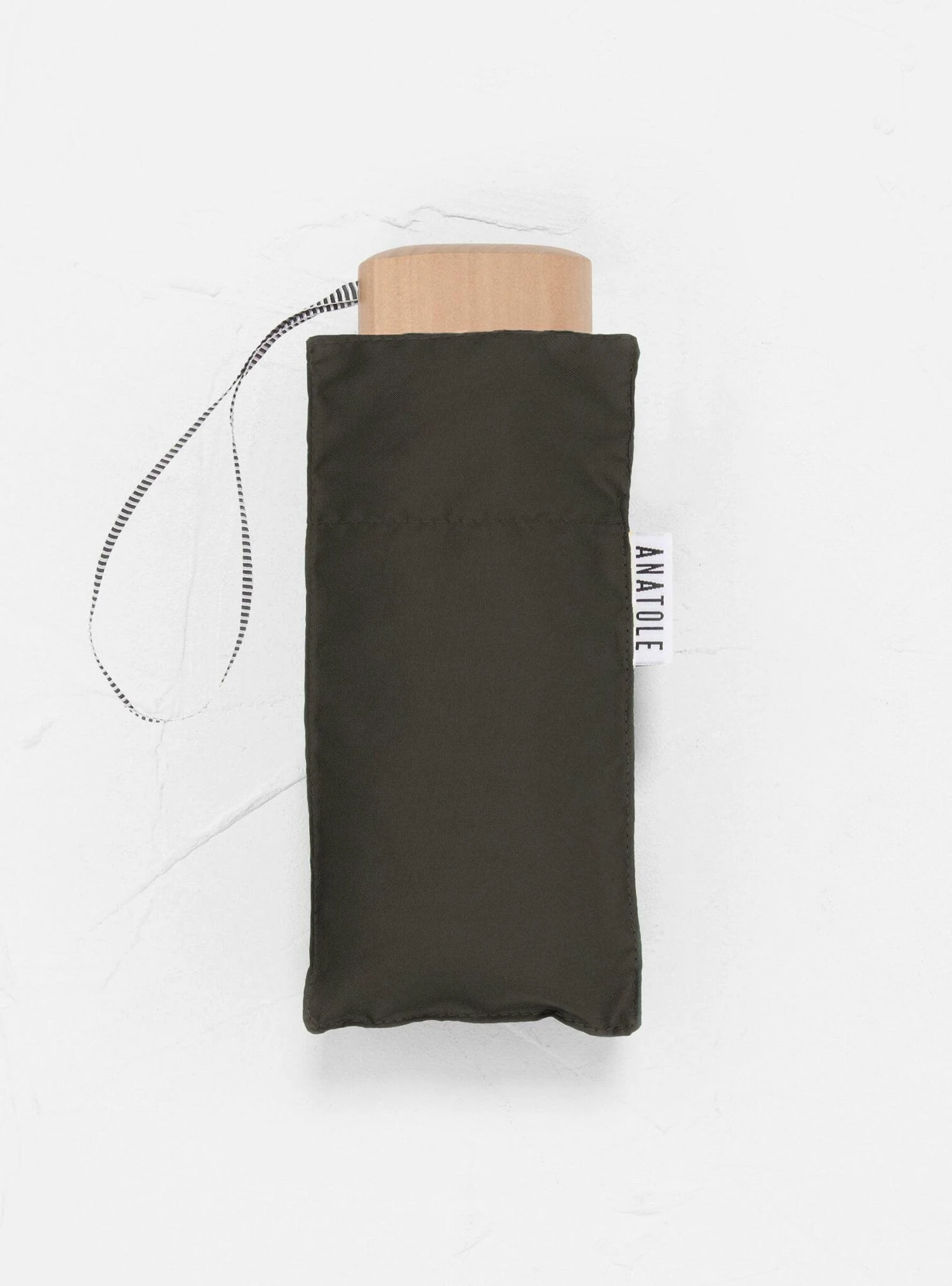 This khaki Leonard umbrella from Anatole is small in size yet mighty in construction. Made with fibreglass ribs, which are reinforced with carbon, it features a maple wood handle and a grosgrain strap.