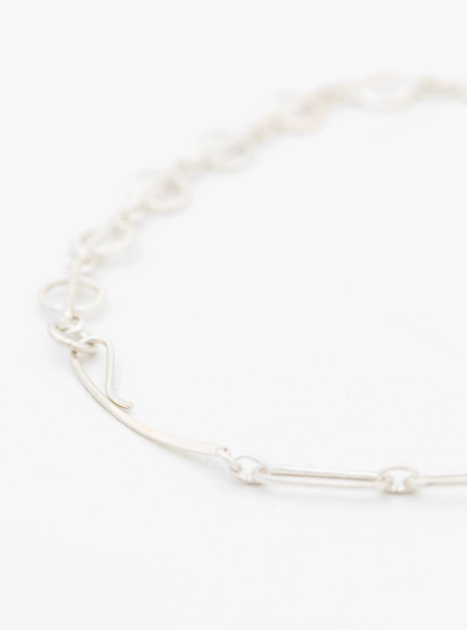 A reimagining of the monotonous paperclip chain, Helena Rohner combines two styles into one solid silver necklace. It is completed by a simple hoop lock and made in Spain.