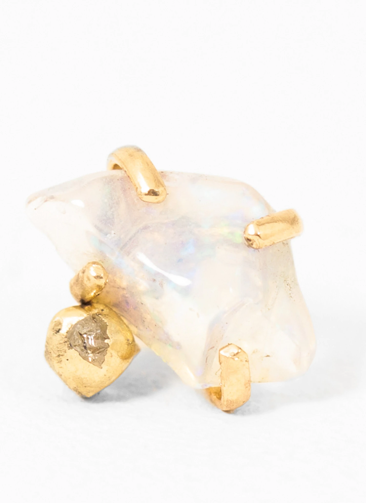 Emilie Shapiro captures the beauty of the night sky with the Milky Way Studs. This statement piece features a rough opal and diamond set in 14k yellow gold.