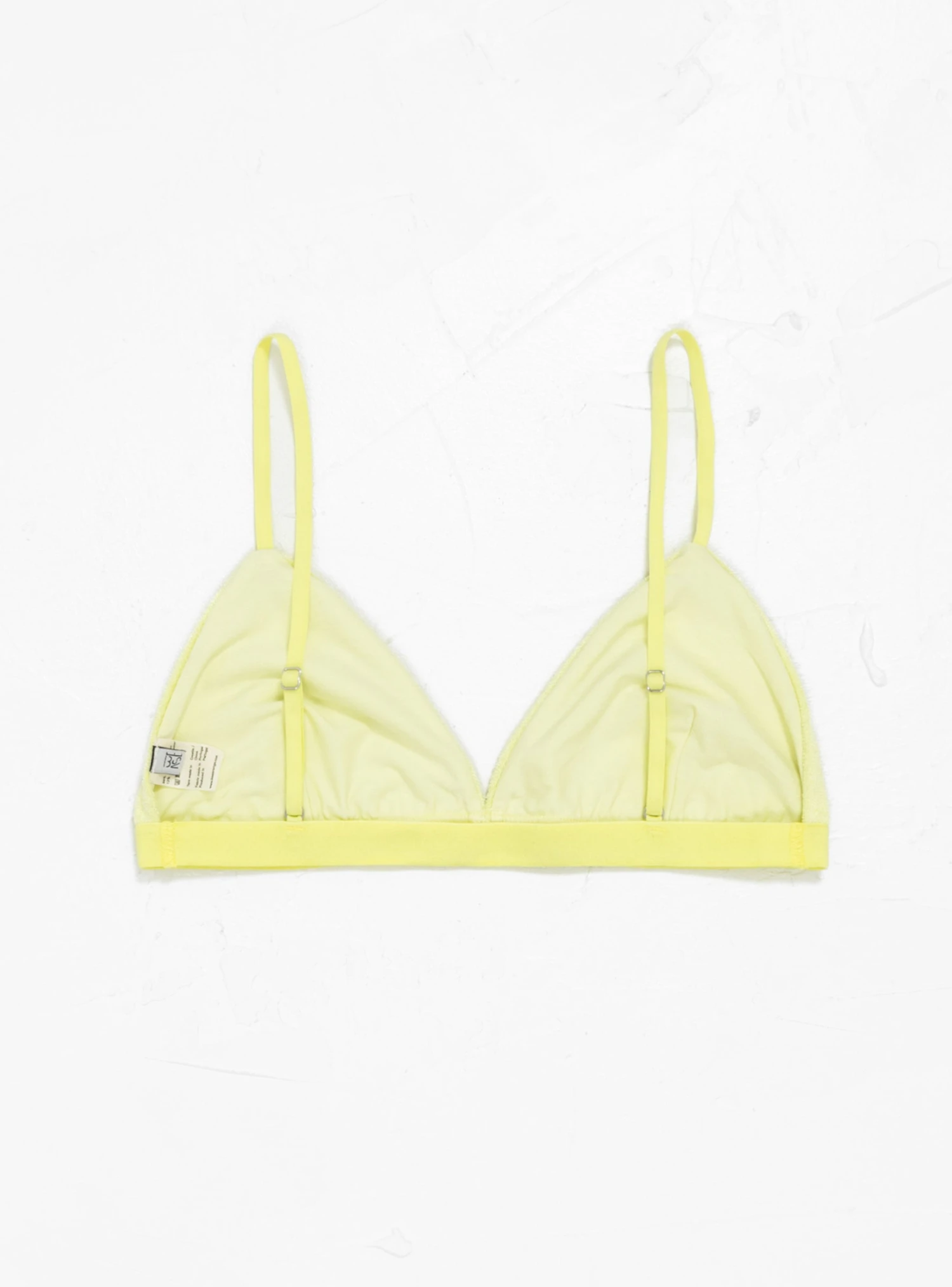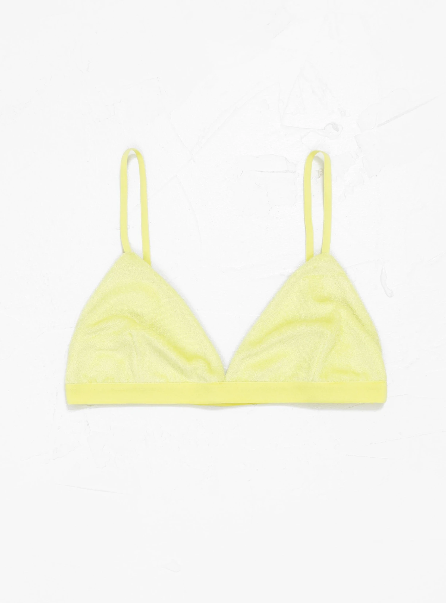 Made in Portugal from velour, formed partly from recycled fibres, this lime-hued Mississippi bra from Baserange features thin, adjustable straps and an elasticated underband for added support.