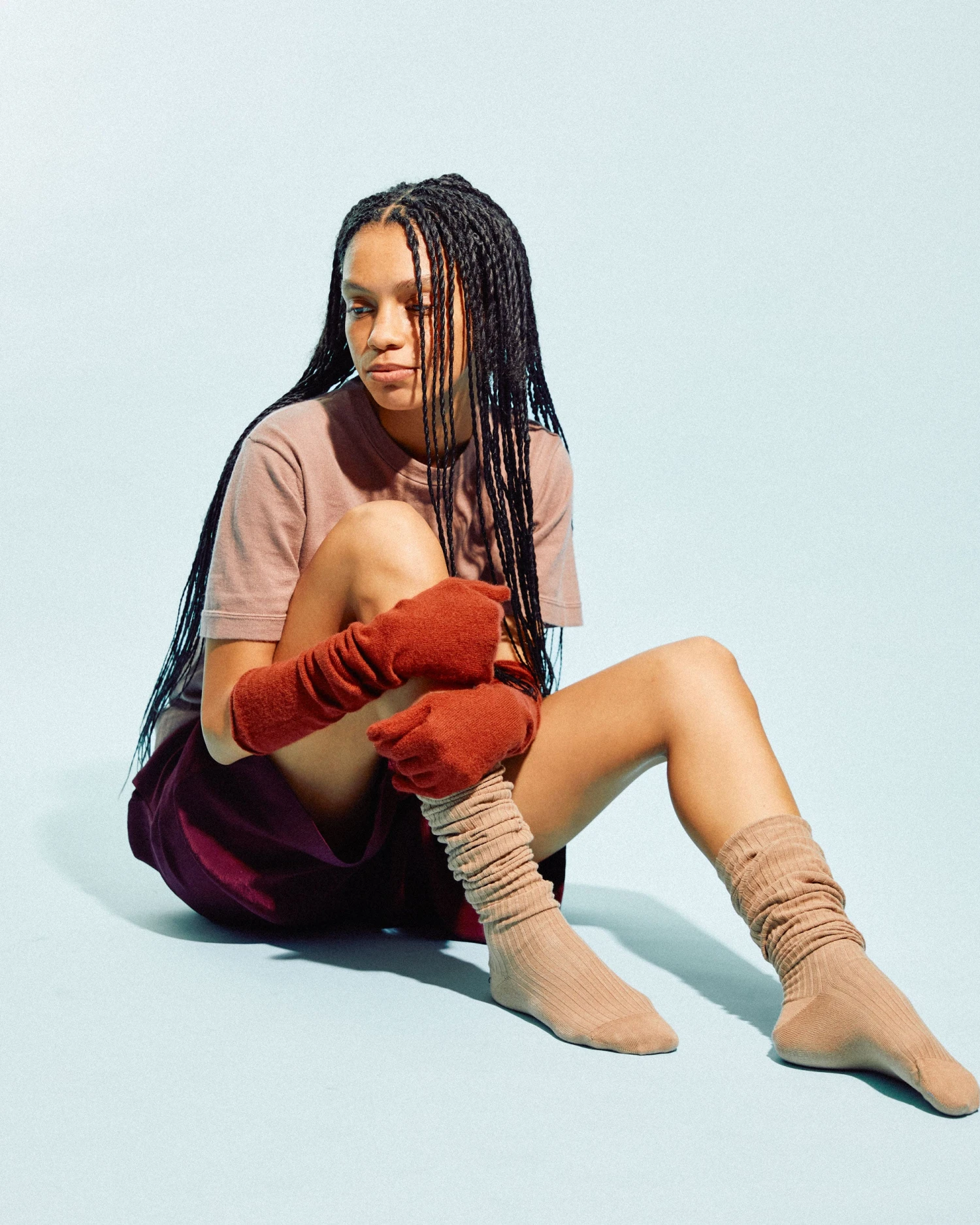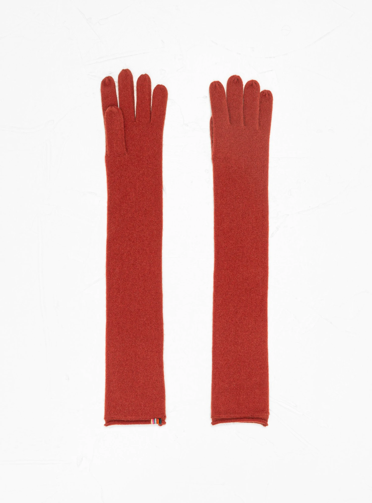 These harissa-red N°241 Opera gloves from Extreme Cashmere are knitted from ultra-soft cashmere-blend yarn and finished with rolled edges.