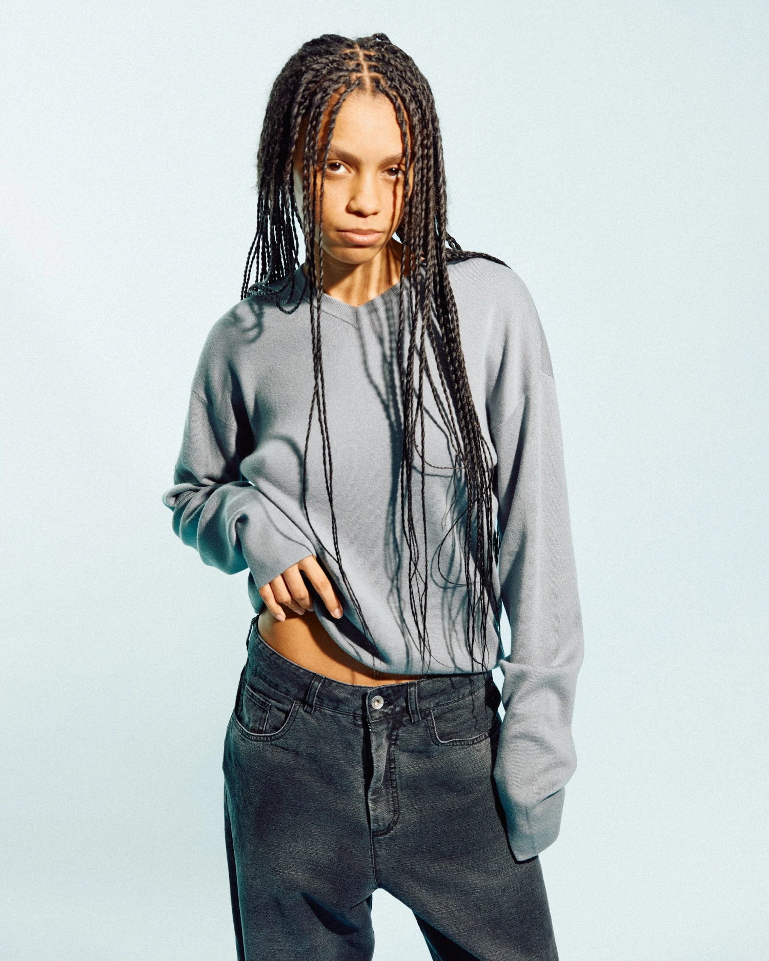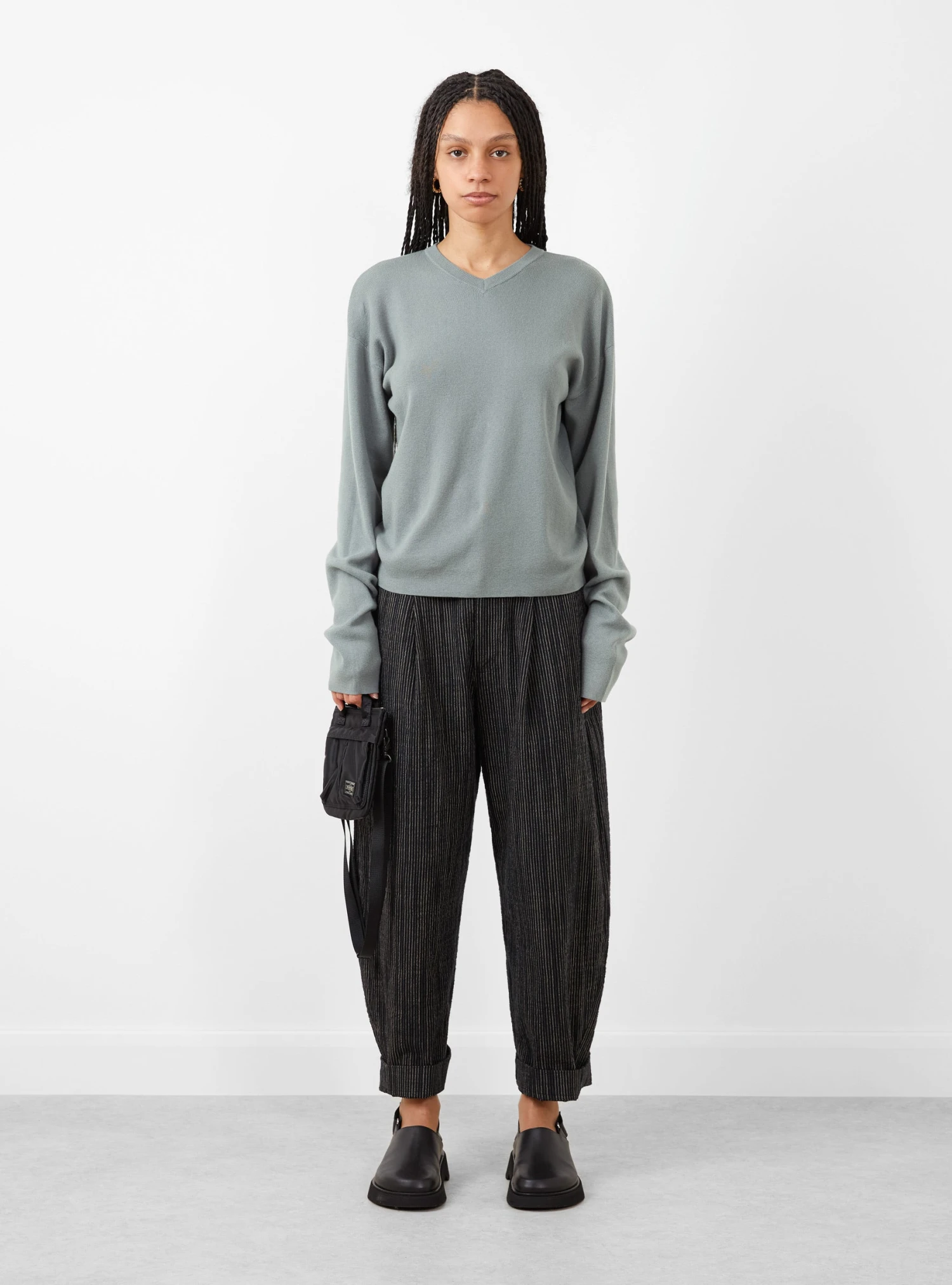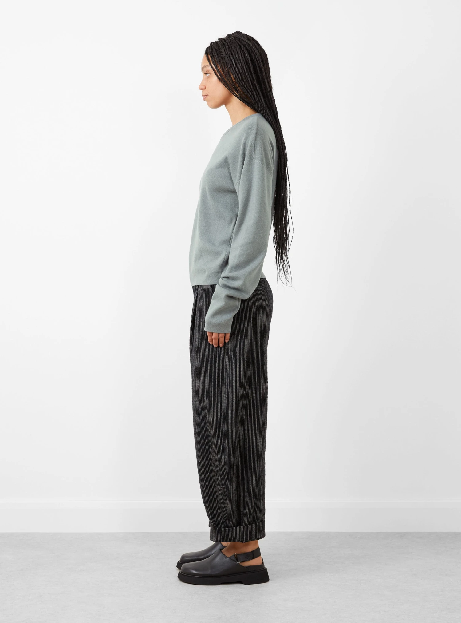 The No.336 from Extreme Cashmere comes in a light sage. Cut from a cotton and cashmere blend, the pullover falls to a regular silhouette and is finished with a v-neck and soft trims.