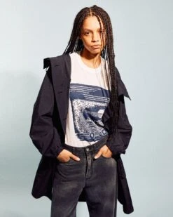 The On The Mountain Pass T-Shirt from YMC is cut from an organic cotton white jersey. Falling to an oversized fit, the tee features a lino print style graphic by British visual storyteller Stewart Easton and is finished with side seam vents.