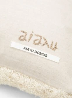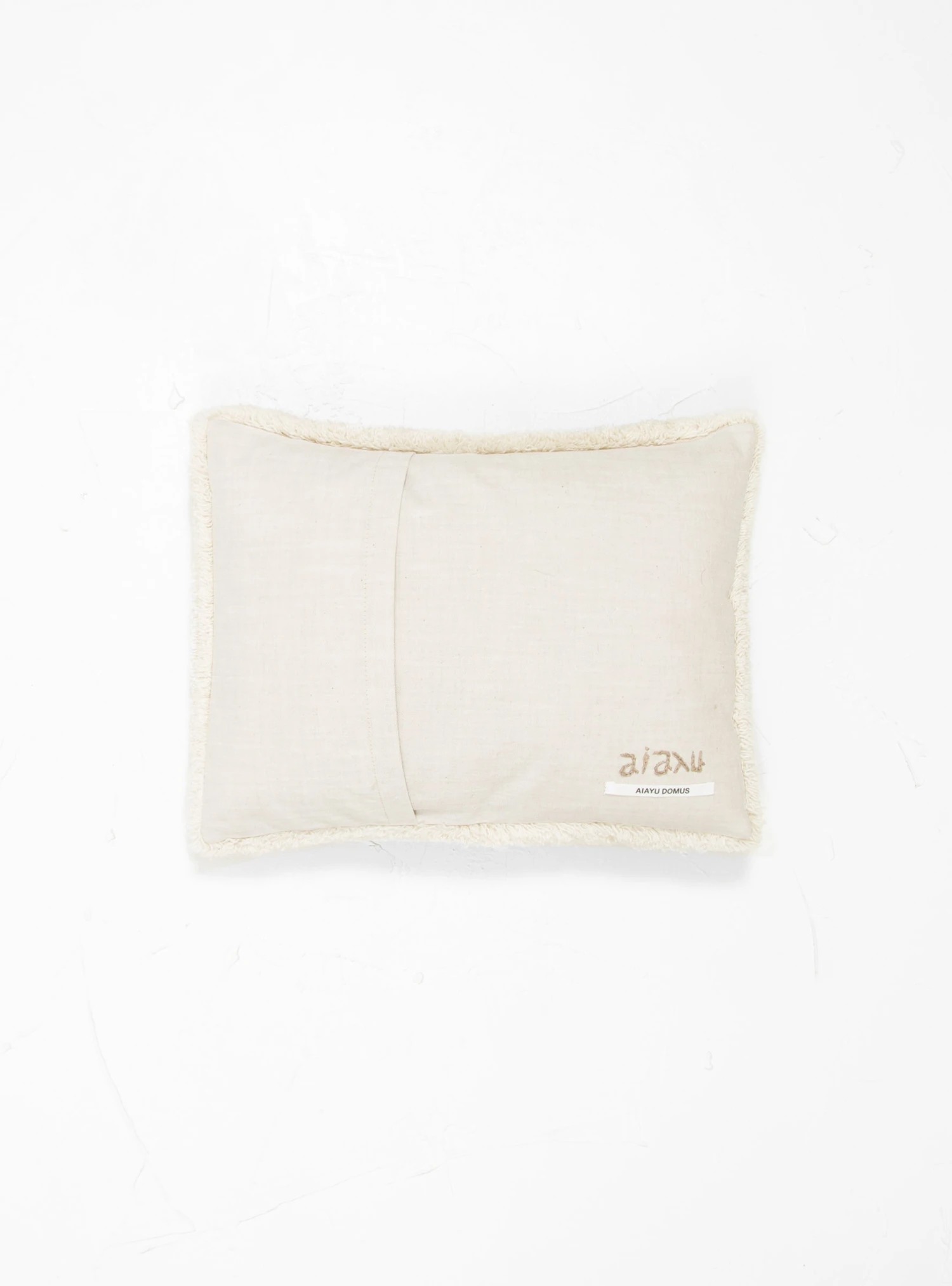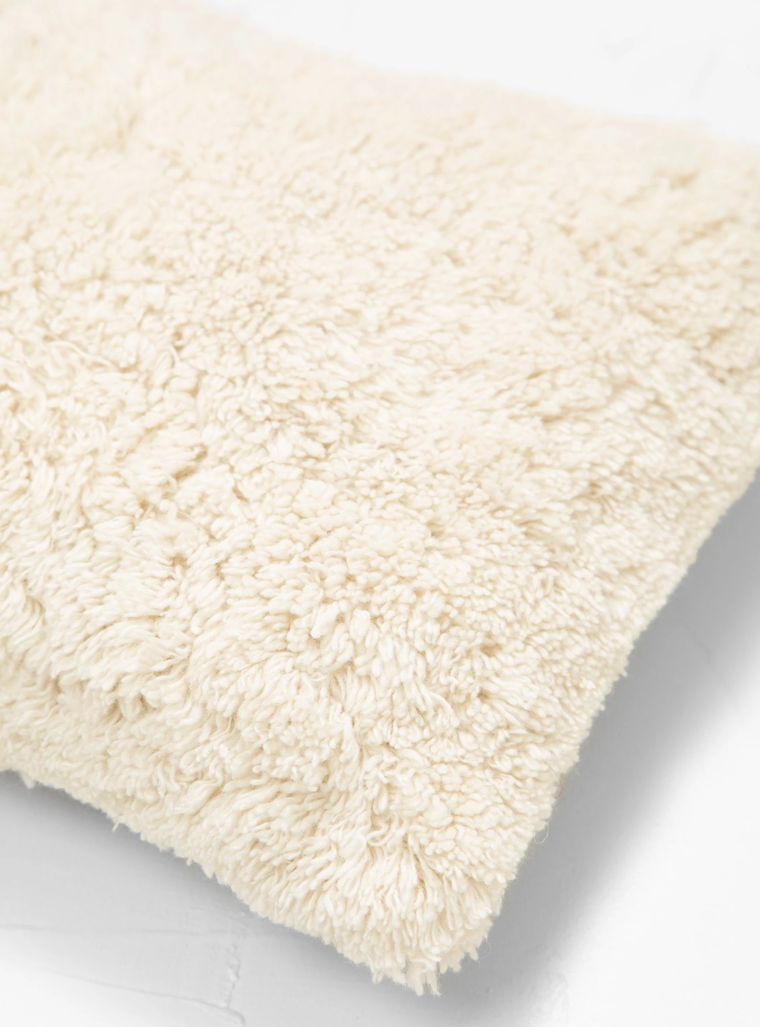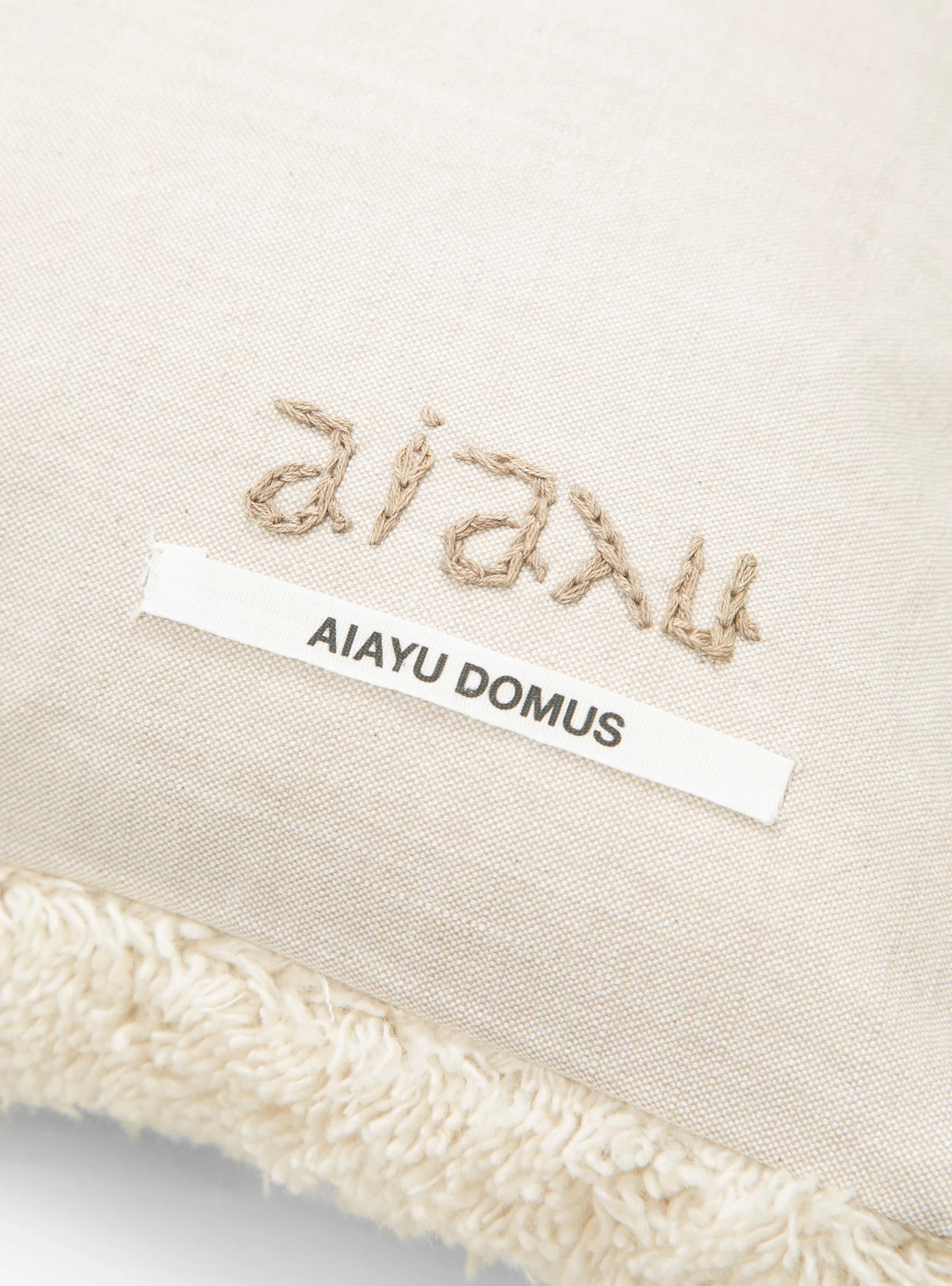 This off-white Puffy cushion from Aiayu is handmade from cashmere by artisans in Kathmandu, Nepal.