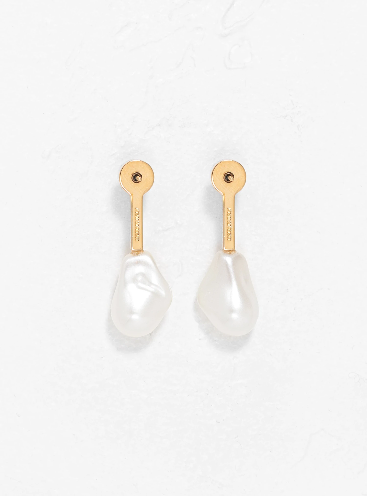 Made in Italy from gold-tone brass, these Reverse Droplet earrings from Rejina Pyo are embellished with elegant glass drops that imitate the texture of Mother of Pearls.