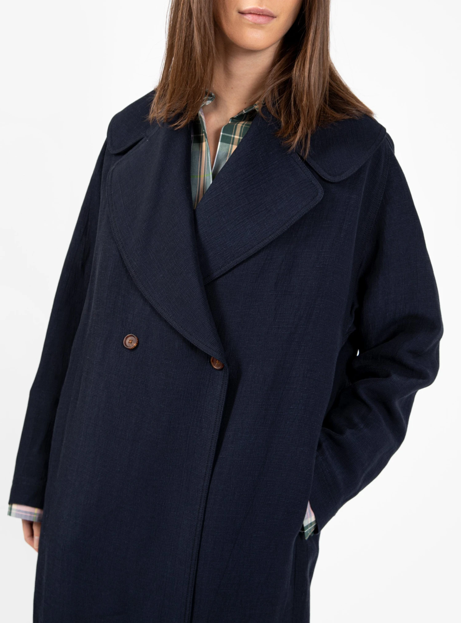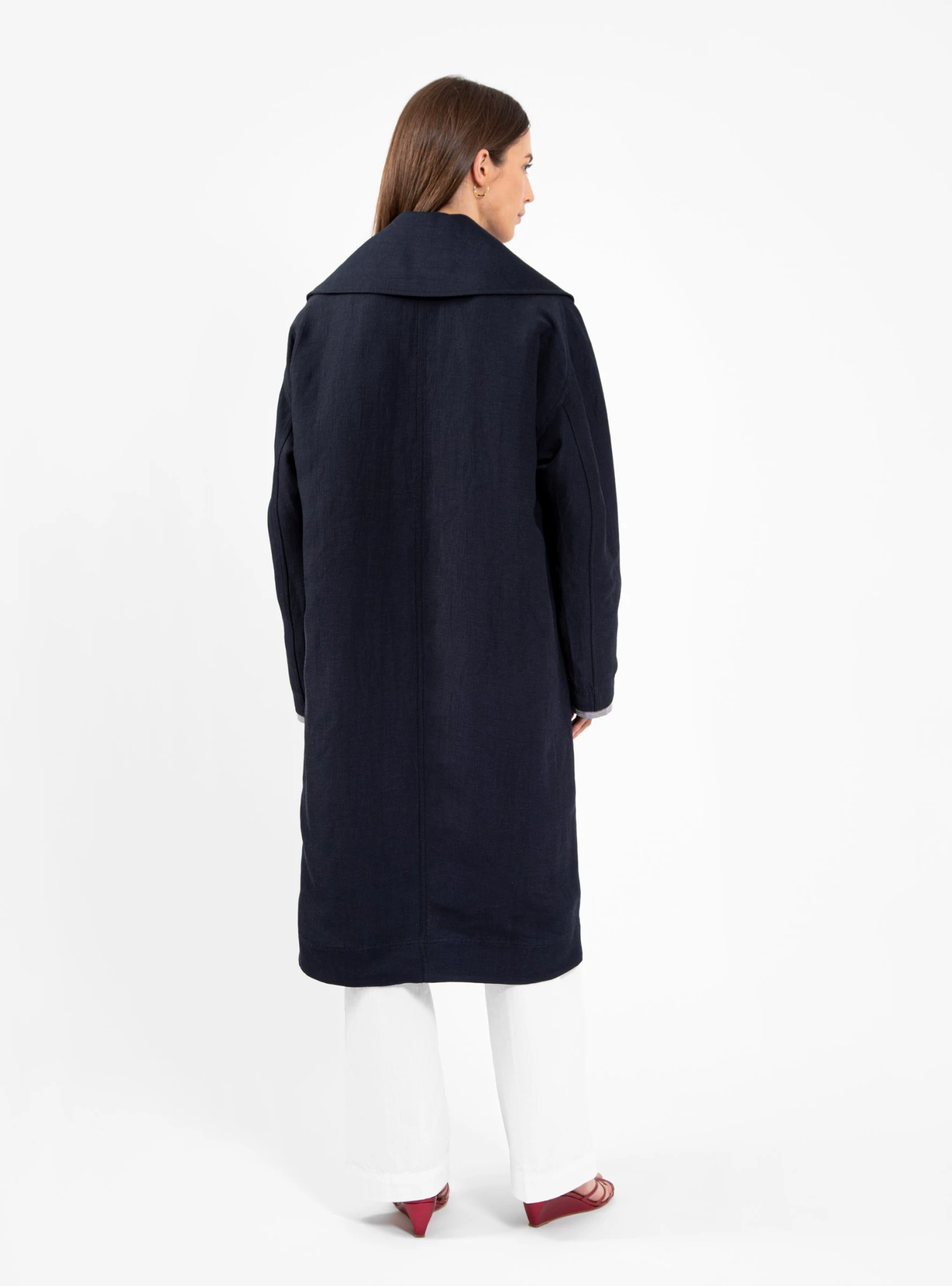 Rachel Comey’s Spring/Summer 22 offering is filled with pieces perfect for transitional dressing, including the Release Jacket. It’s crafted from a lightweight linen blend to an oversized, longline silhouette with wide lapels and is finished with tortoiseshell buttons and side slip pockets.