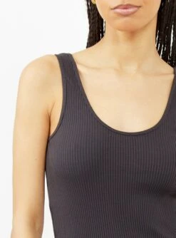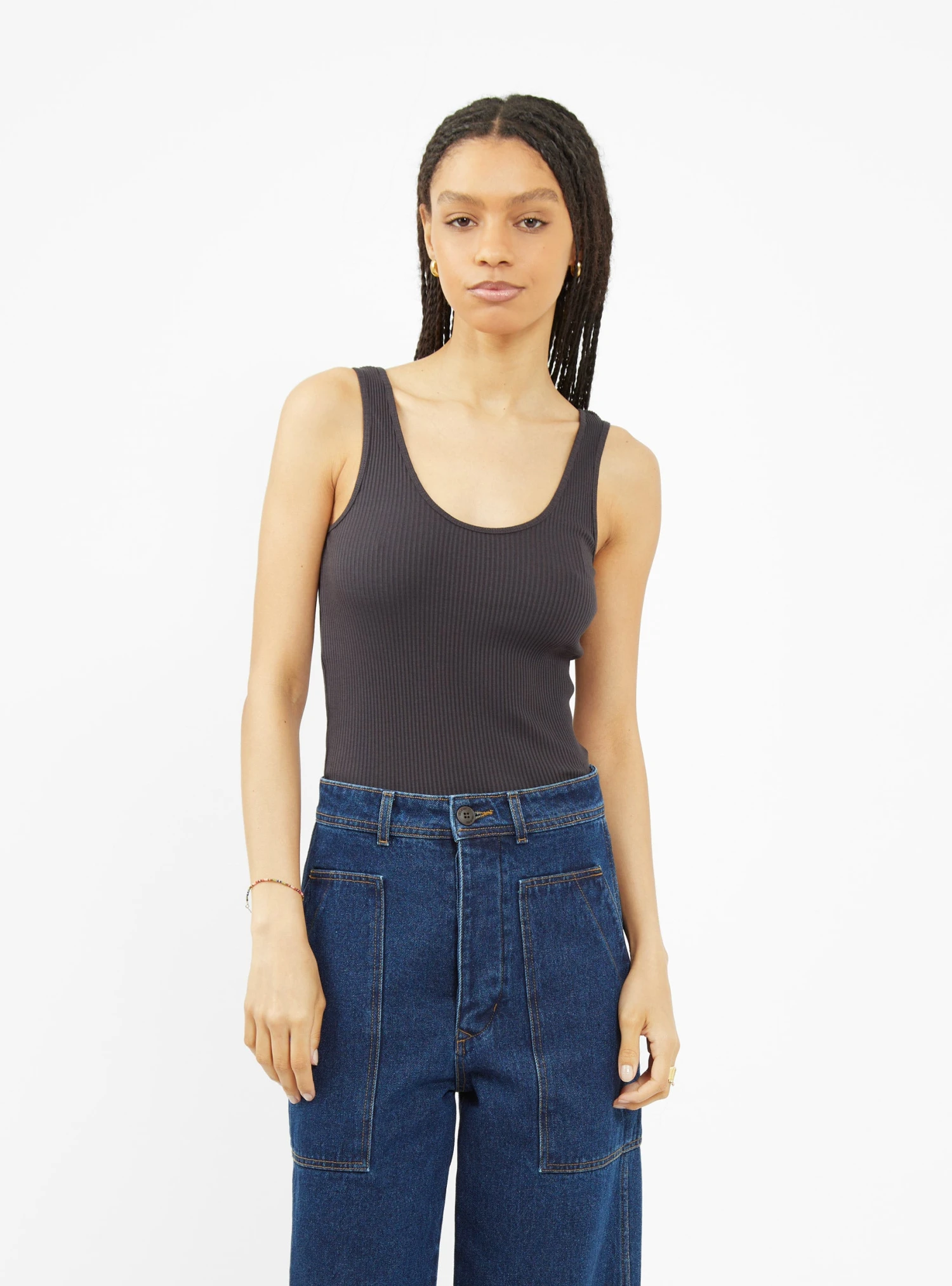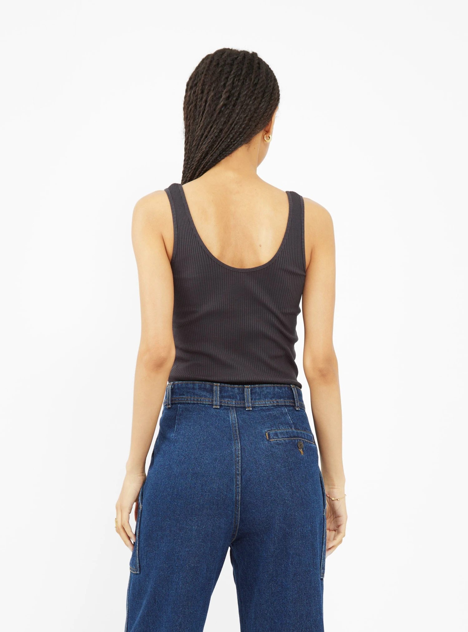 Made from ribbed organic cotton jersey, this charcoal vest from PICO is cut to a fitted silhouette with a scoop neck and finished with bound edges.