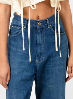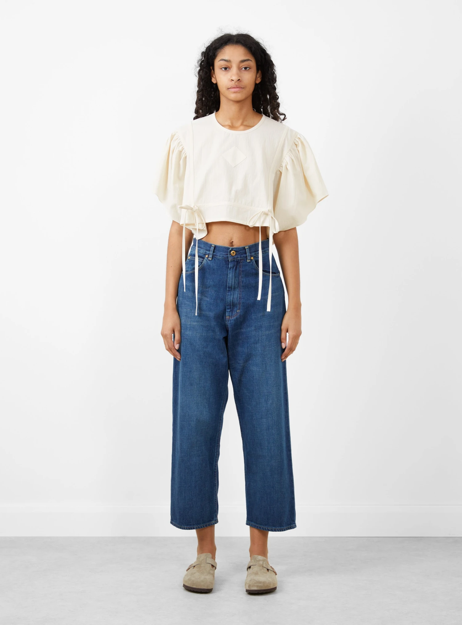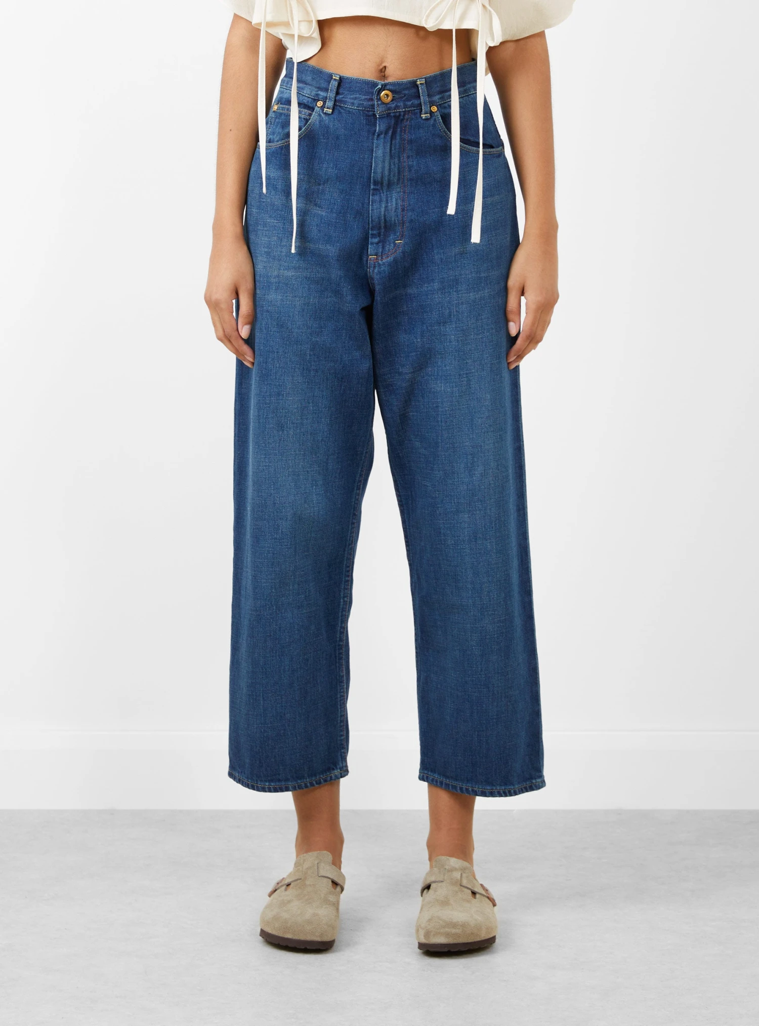 Made in Japan from selvedge denim, the Ranch Pants from Chimala are cut to a high waisted, wide-leg silhouette with a cropped leg.