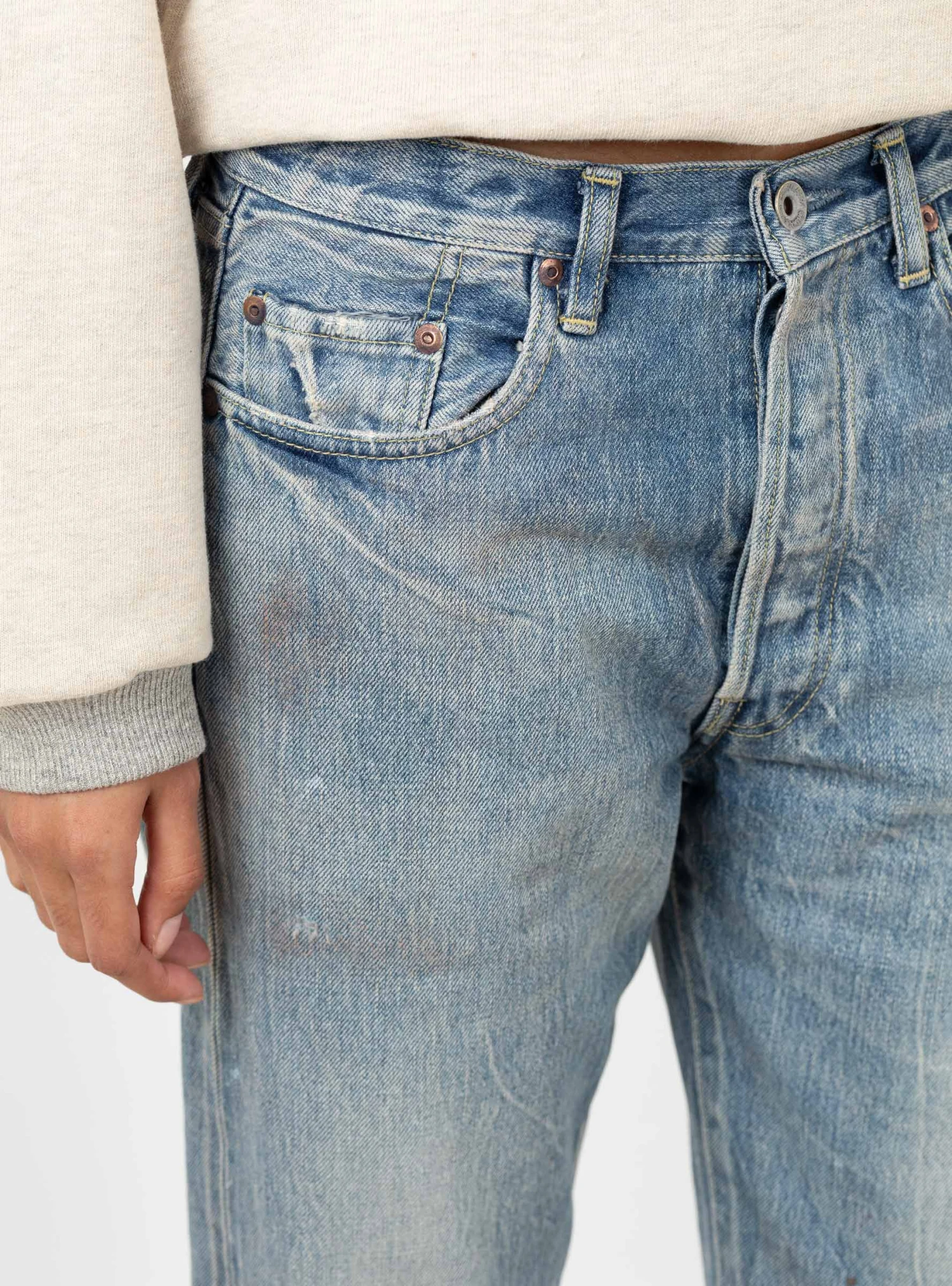 Made in Japan from 13.5oz selvedge denim with a classic five-pocket construction, these light splatter blue jeans from Chimala are cut to a straight-leg silhouette and feature subtle distressing throughout.