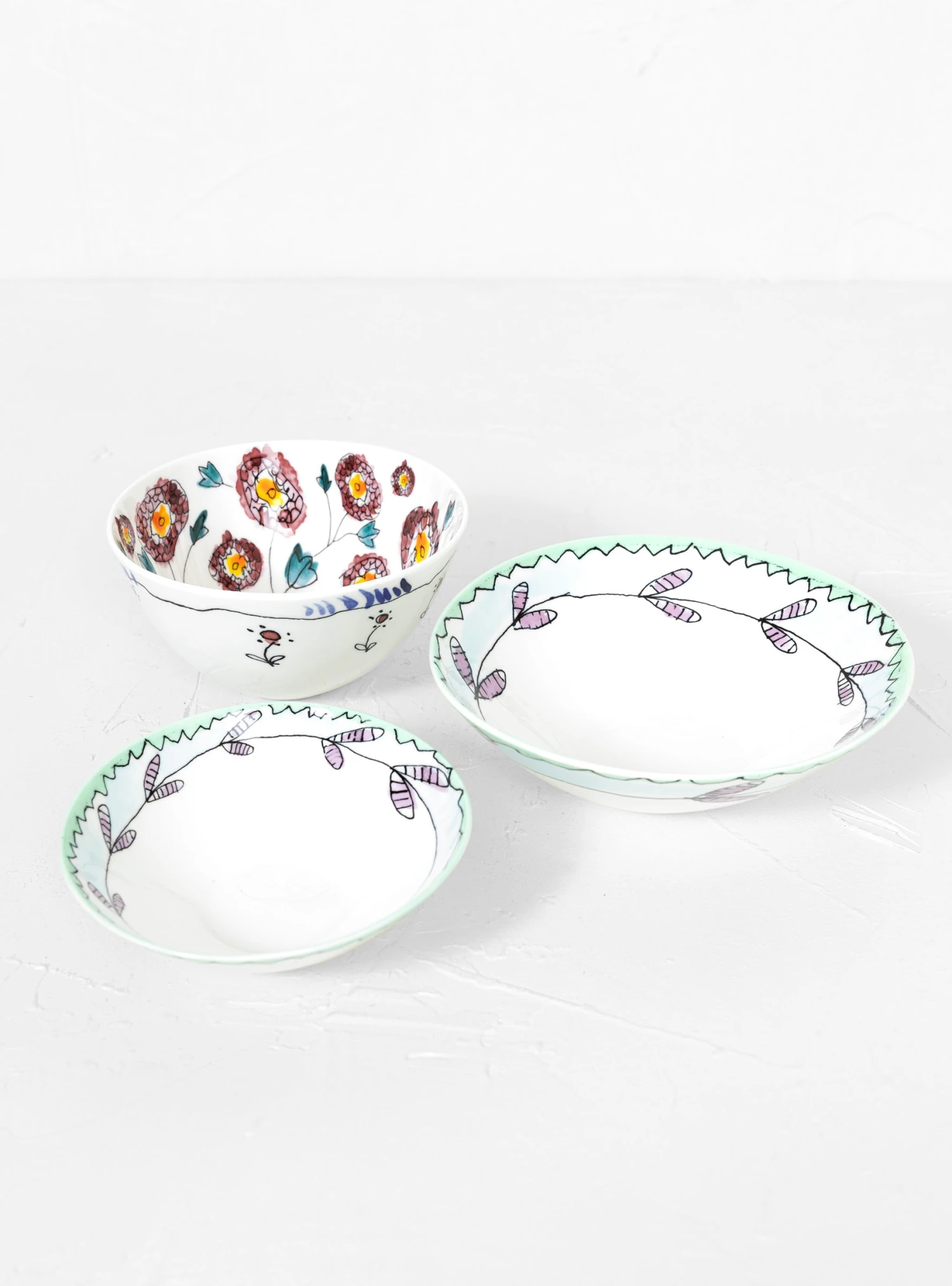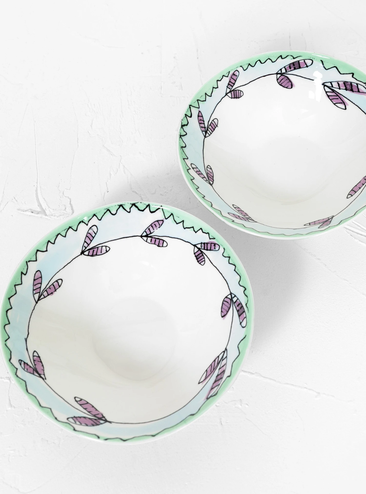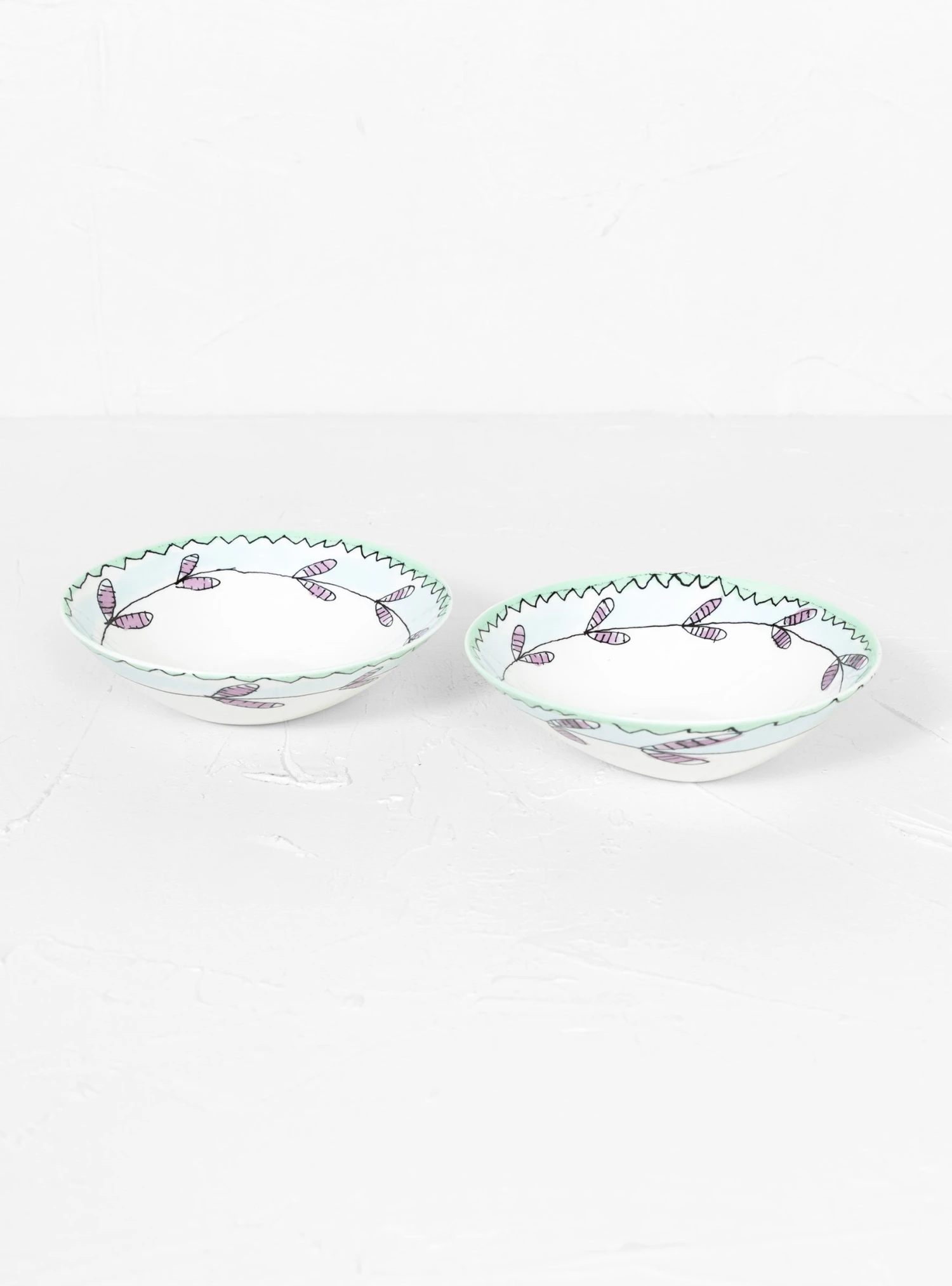 Part of the Serax x Marni collaboration, this set comprises two medium-sized porcelain low bowls. They are hand-finished with a precisely applied flower motif and then glazed for long-lasting wear resistance.