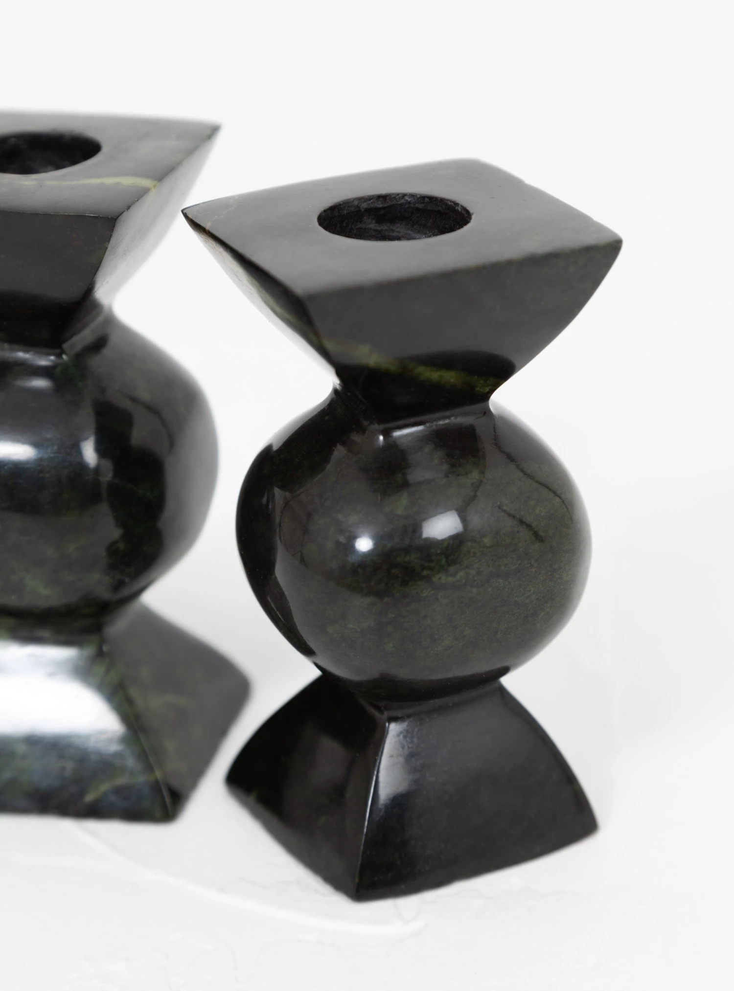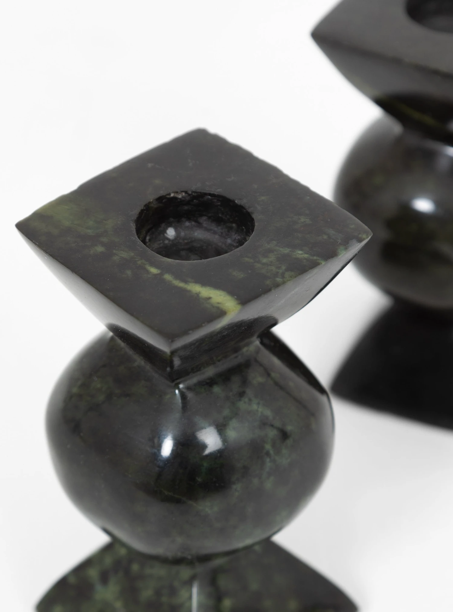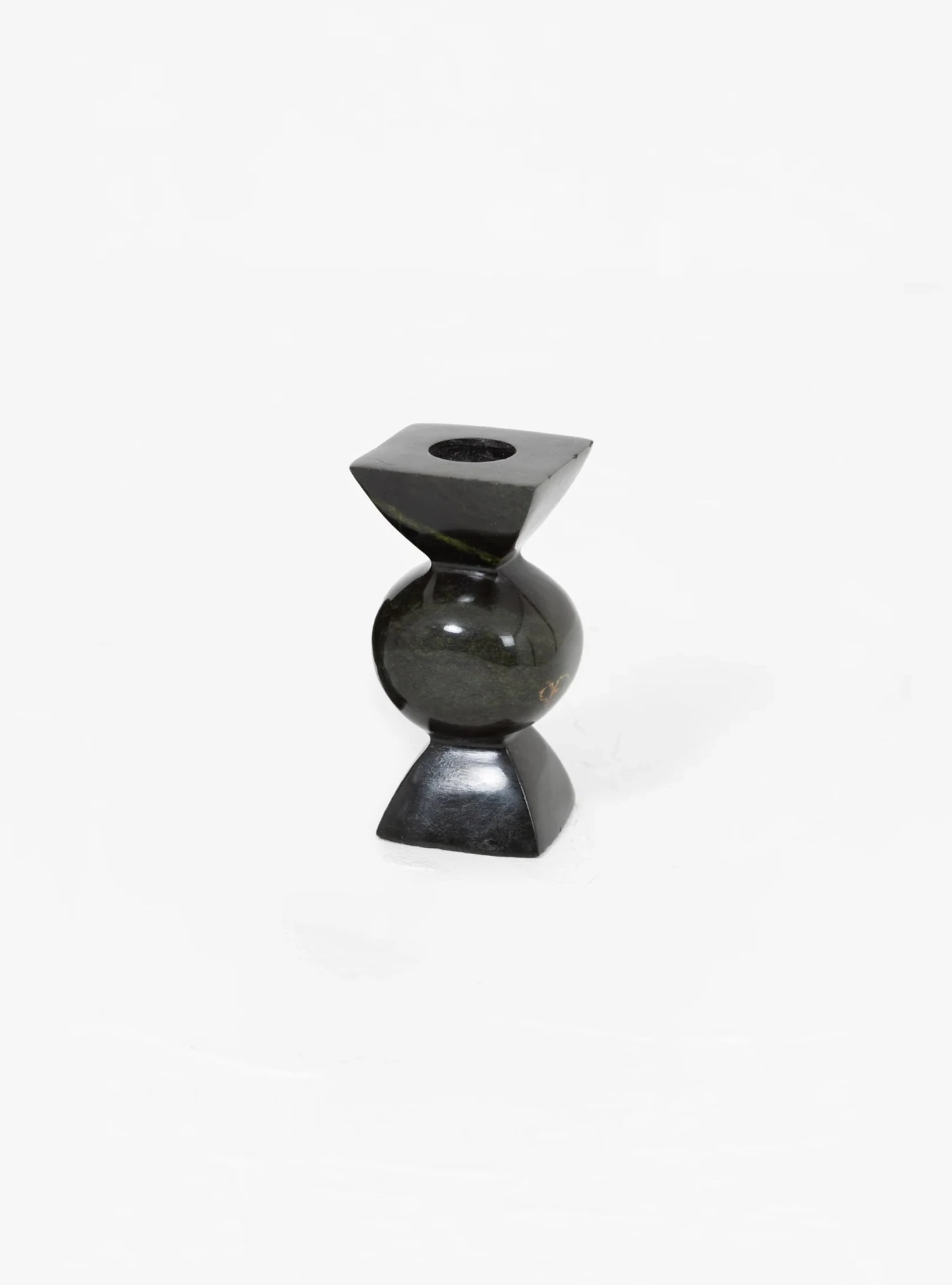 The Short Pillar candlestick is art of a collection designed by Alessandra Williams and produced with Asili, a community of makers based in Africa. The shape was inspired by the antique turned wooden stools, and each item is hand carved in Green Leopard stone, a type of serpentine stone found in Zimbabwe.