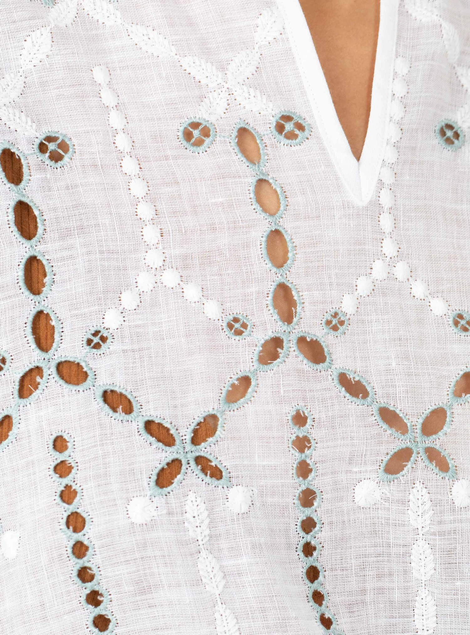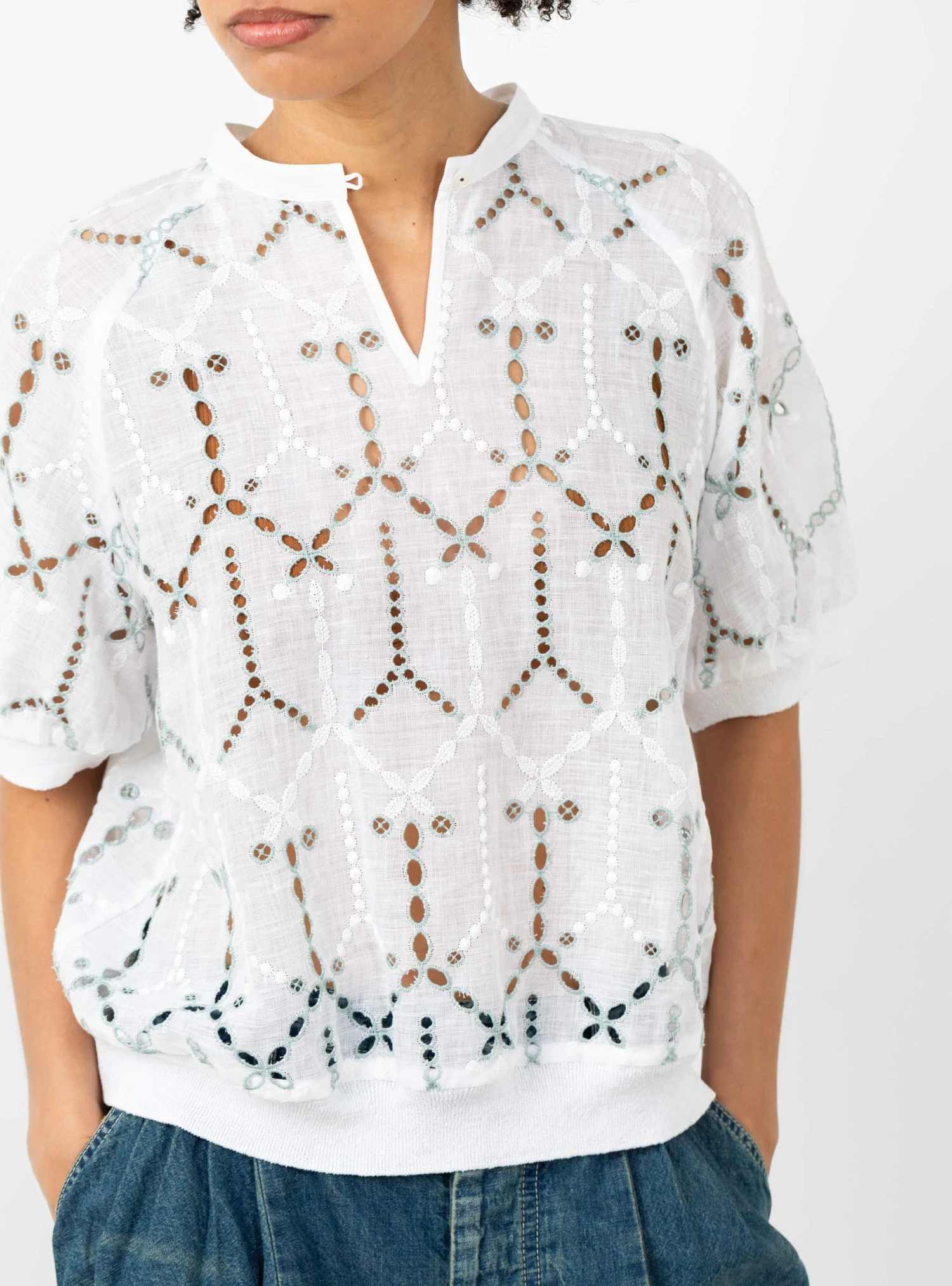 The Sound Drop Blouse from Minä Perhonen arrives in a soft white. Made in Japan from linen, the lightweight blouse falls to a relaxed fit. The summer staple features a v-neck mandarin collar and is finished with ribbed trims and delicate floral embroidery, as well as cutout detailing, throughout.