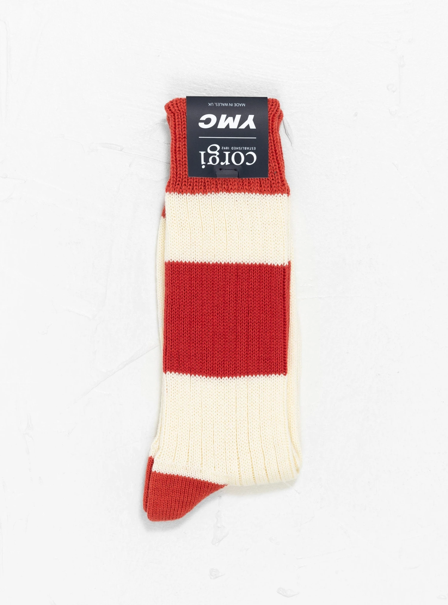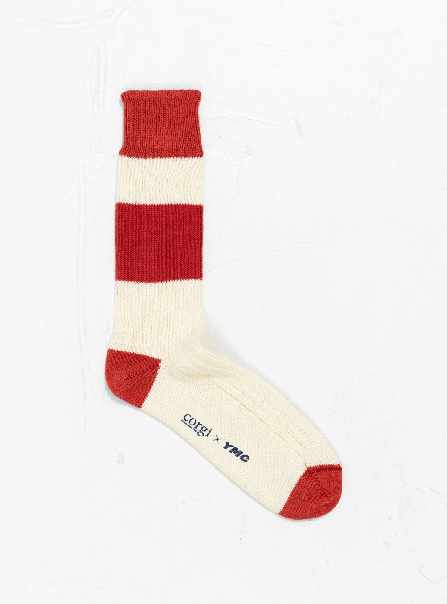 The Sport Sock from YMC comes in a cotton ribbed knit in a classic red and cream colourway. Made in Wales, the high ankle socks have a contrast leg stripe and are finished with a solid tone heel, toe and cuff.