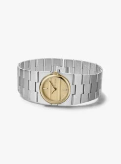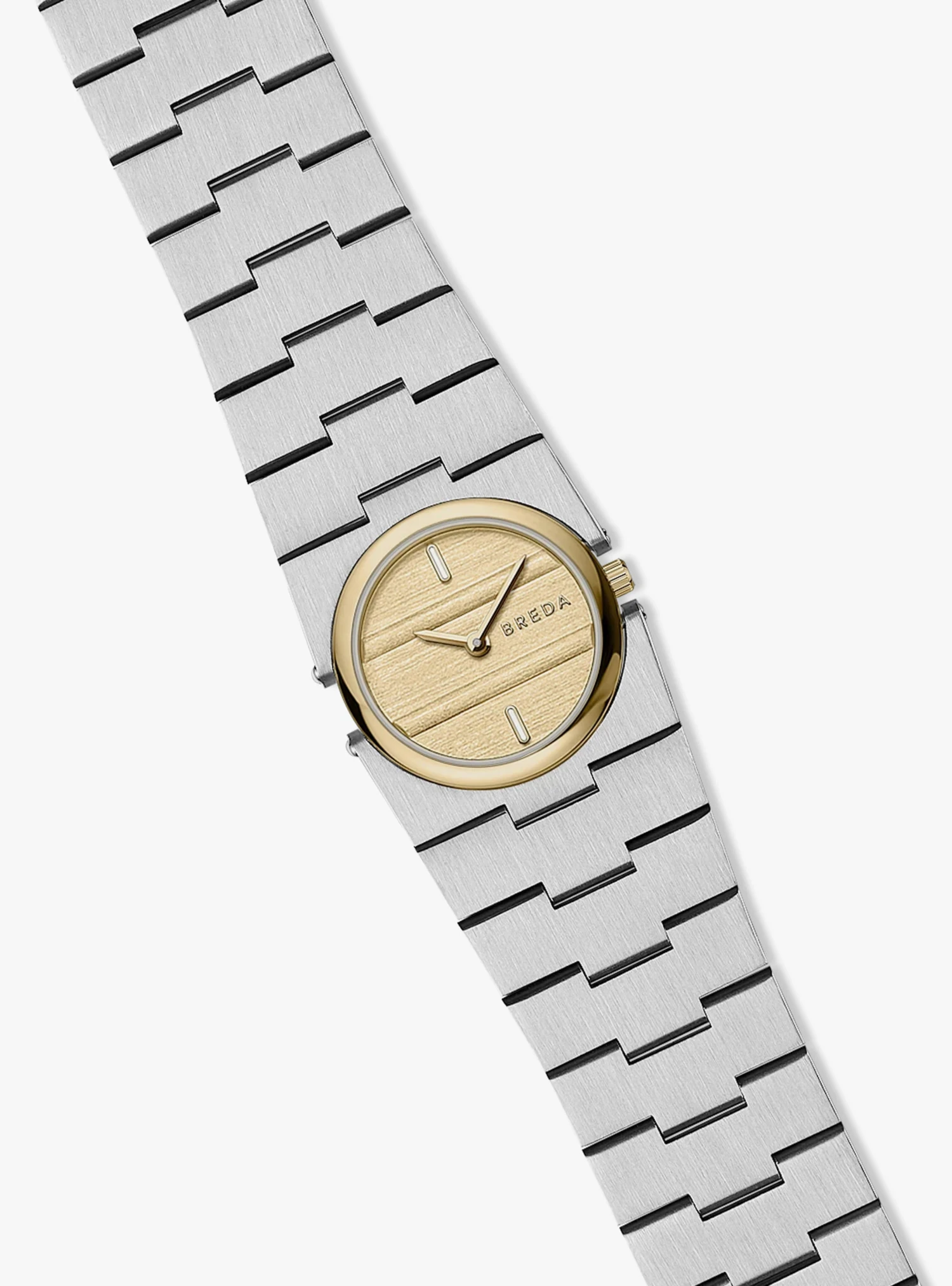 The Sync watch from BREDA is inspired by the synchronicity of moments and the completion of circles. Housed in a gold and silver-coloured 25mm Stainless Steel Case, the 3ATM water-resistant watch has Japanese-made Miyota Quartz Movement.