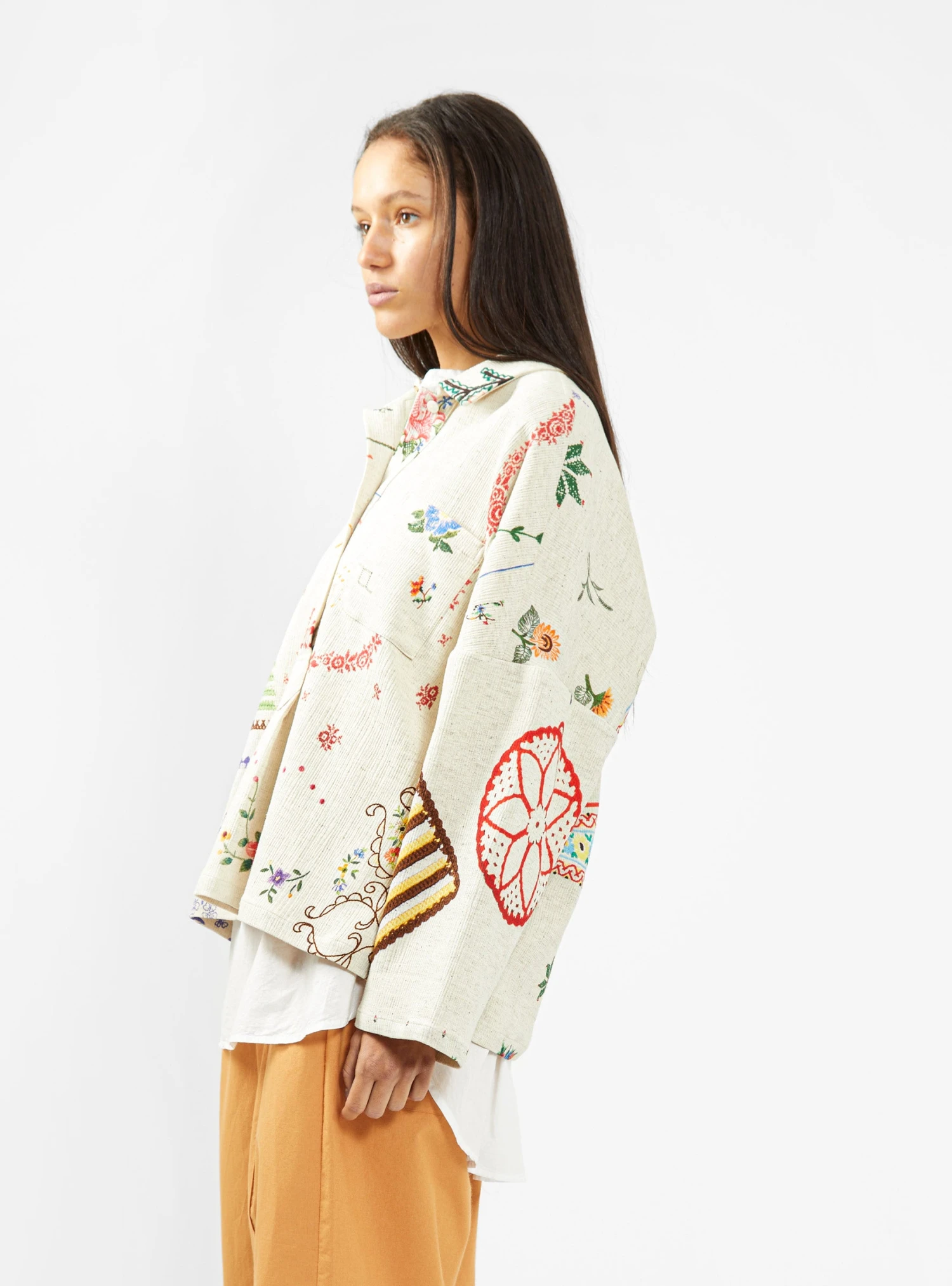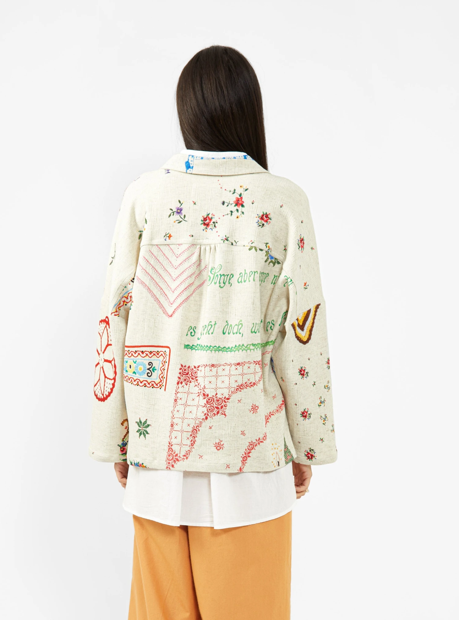 Anntian provide a characterful addition to your seasonal wardrobe with this Unisex Shirt. Coming made in Germany from a lightweight cotton blend, this piece is cut to a wide, cropped silhouette and features an array of colourful text and floral designs throughout.