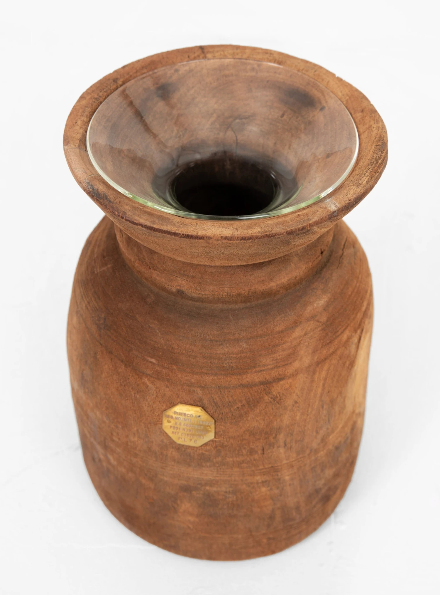 This Vintage Wooden Vase from Puebco is made by reusing old wooden canisters that were used to hold spices. Each vase is genuinely unique through different sizes, shape and detailing. The glass cylinder therefore also varies in size and is perfect for flowers.