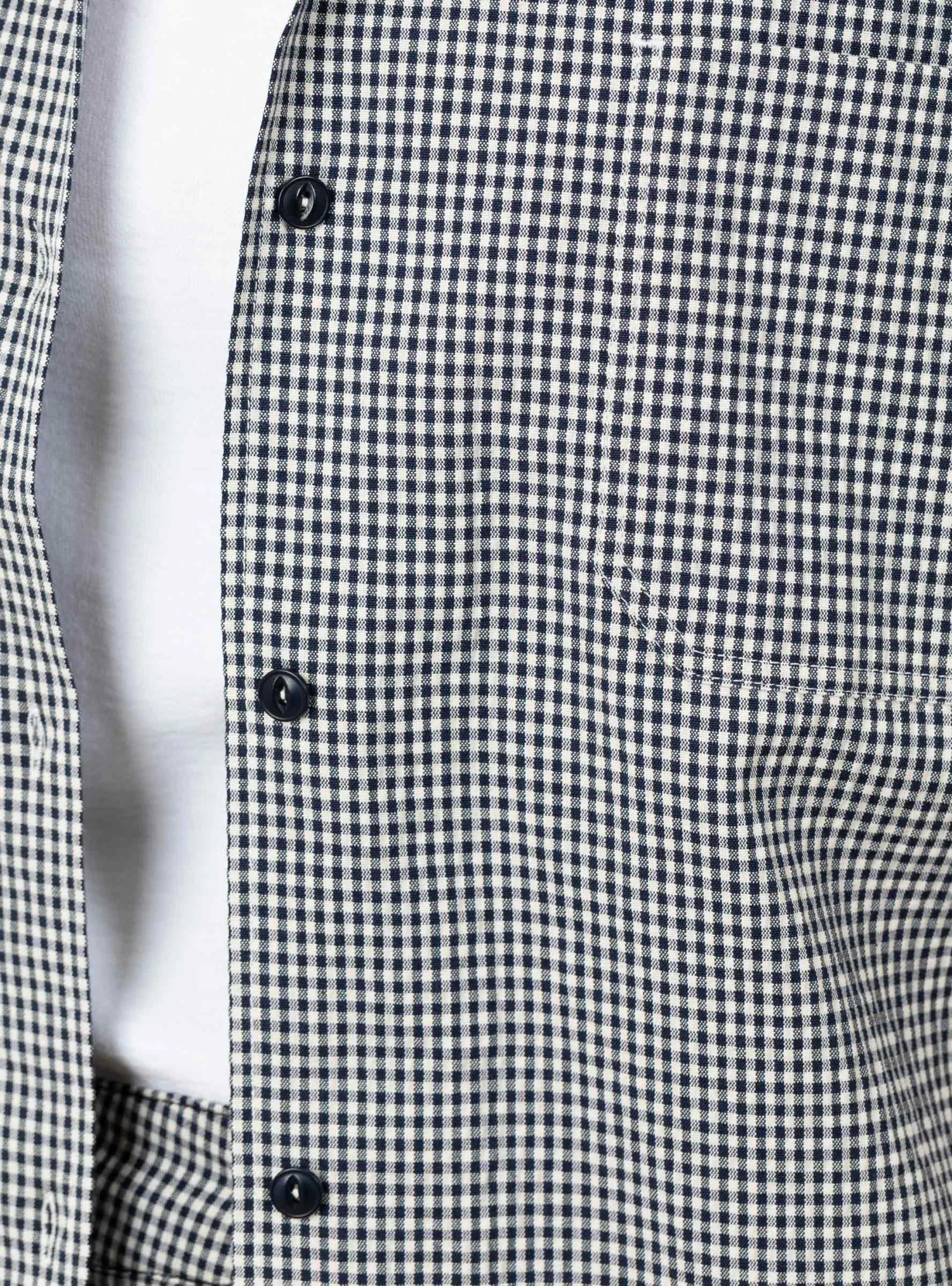 The Wanda Shirt from YMC arrives in a navy and ecru gingham check. Cut from an Italian crinkle cotton blend, the shirt falls to a relaxed fit with a boxy finish. The collared shirt features so many details to love, including a patch pocket at the front chest, a closed back pleat and a corozo button fastening at the front and the beck hem; which allows you to create the fit of your choice.
