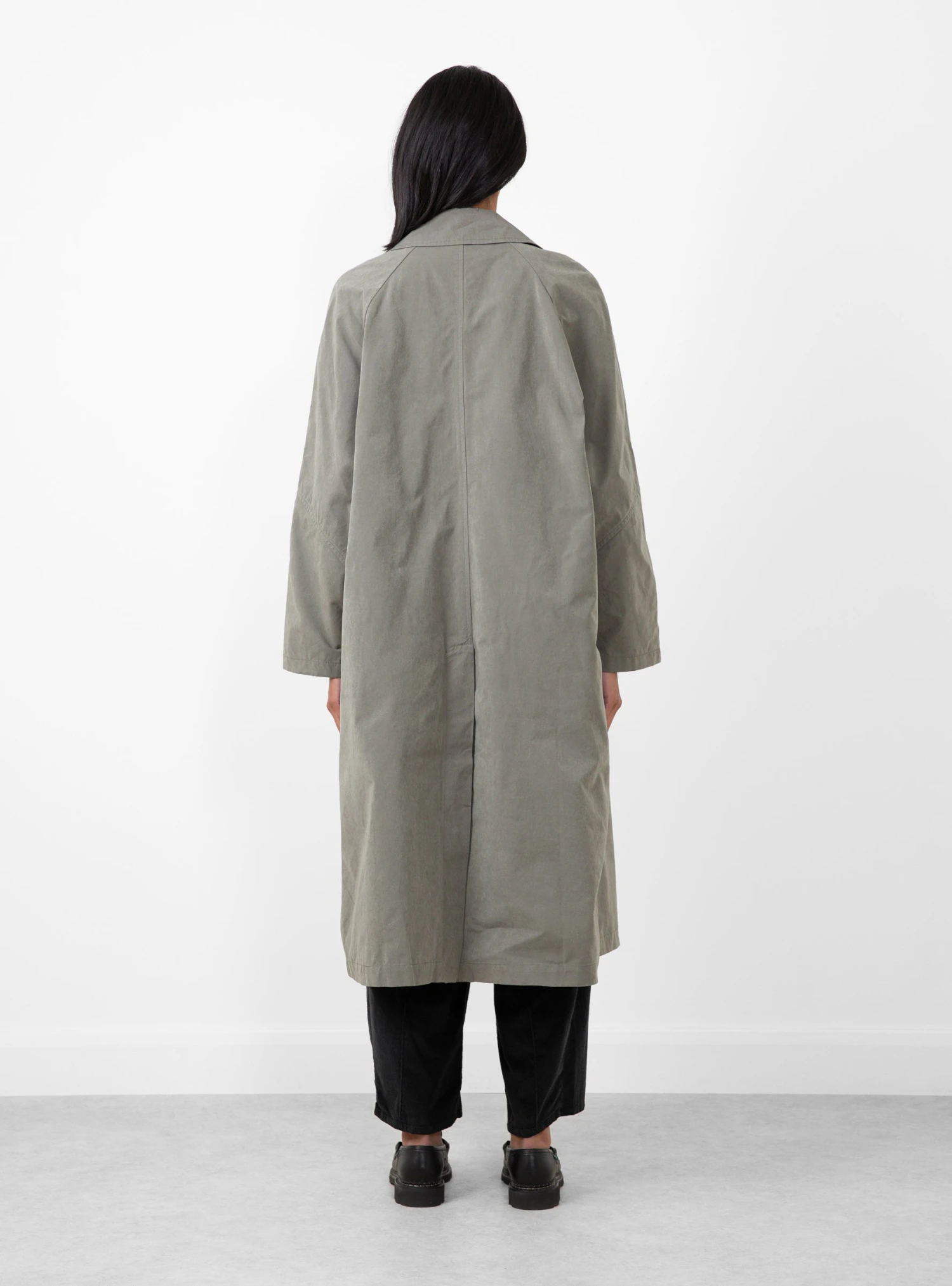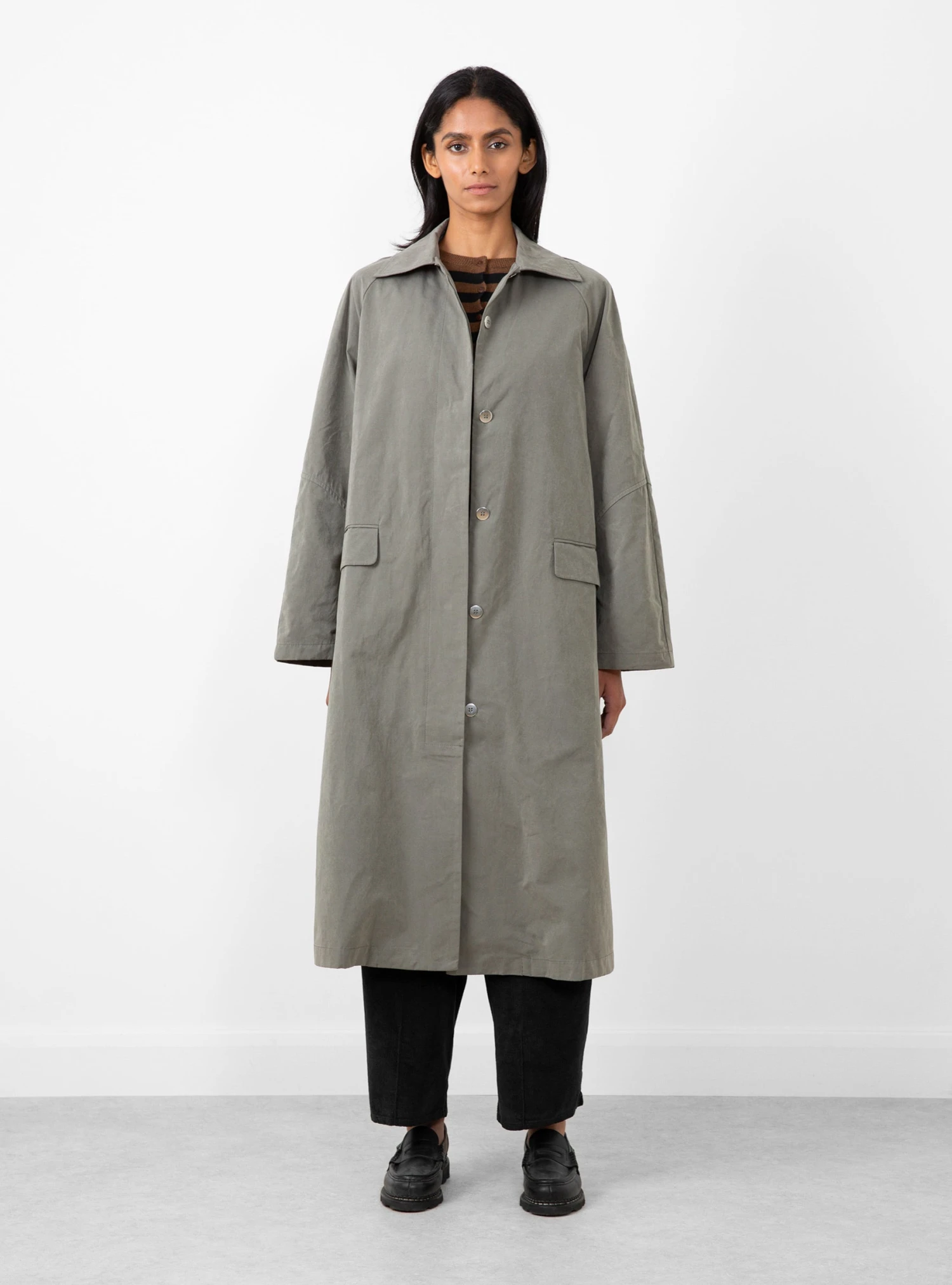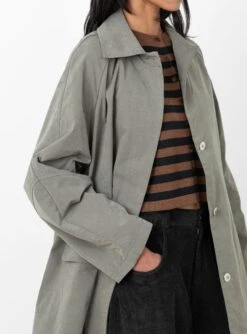 The Wax Cotton Trench Coat from Cordera arrives in a taupe grey. Made in Spain from a wax cotton, the trench coat falls to a relaxed, maxi silhouette. The textured trench features stitch detailing throughout, including at the button placket and the elbows. A metal button closure and a patch pockets at the hip round off the jacket.